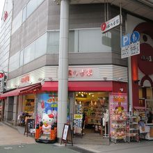 店頭に飾られた着物を着たキティちゃんが目印です。