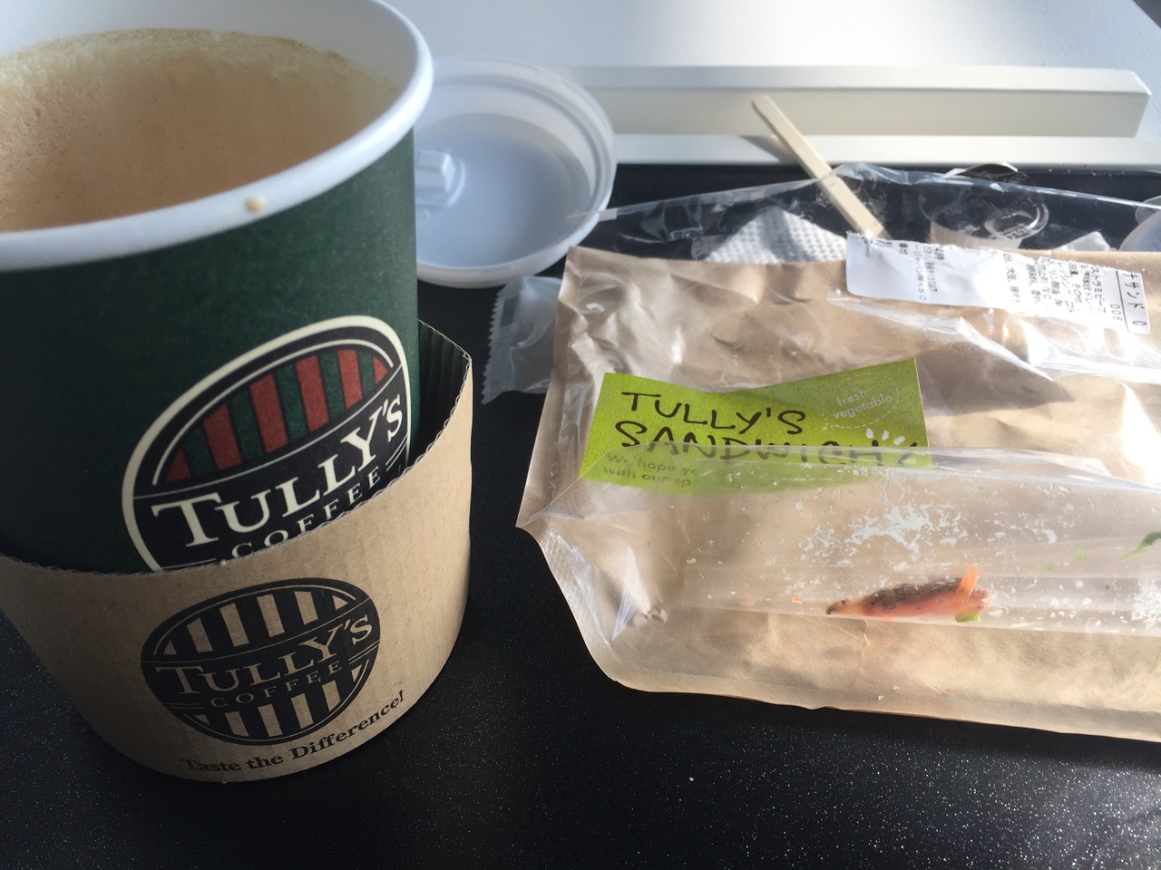 北ウィングへのシャトルに乗るとほとんど食事出来るところがない。麺かサンドイッチということで、朝ですから無難にタリーズ。選択肢なし。