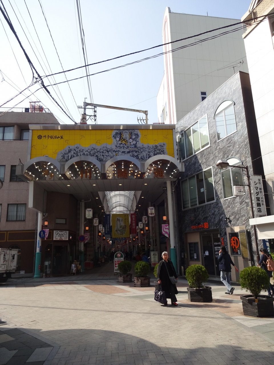 中州と博多川を隔てた東側に上川端、そこに400メートル続く商店街です。