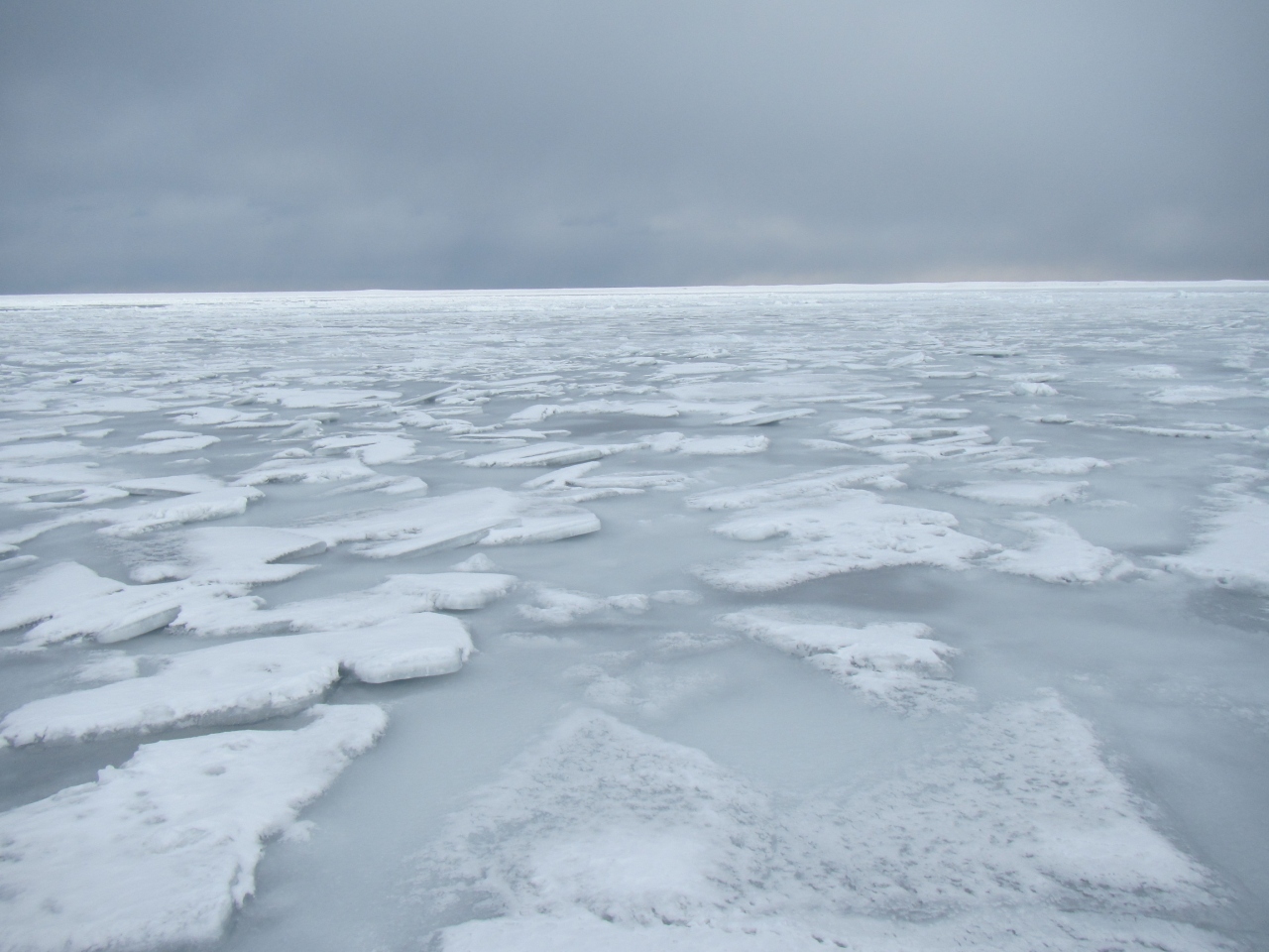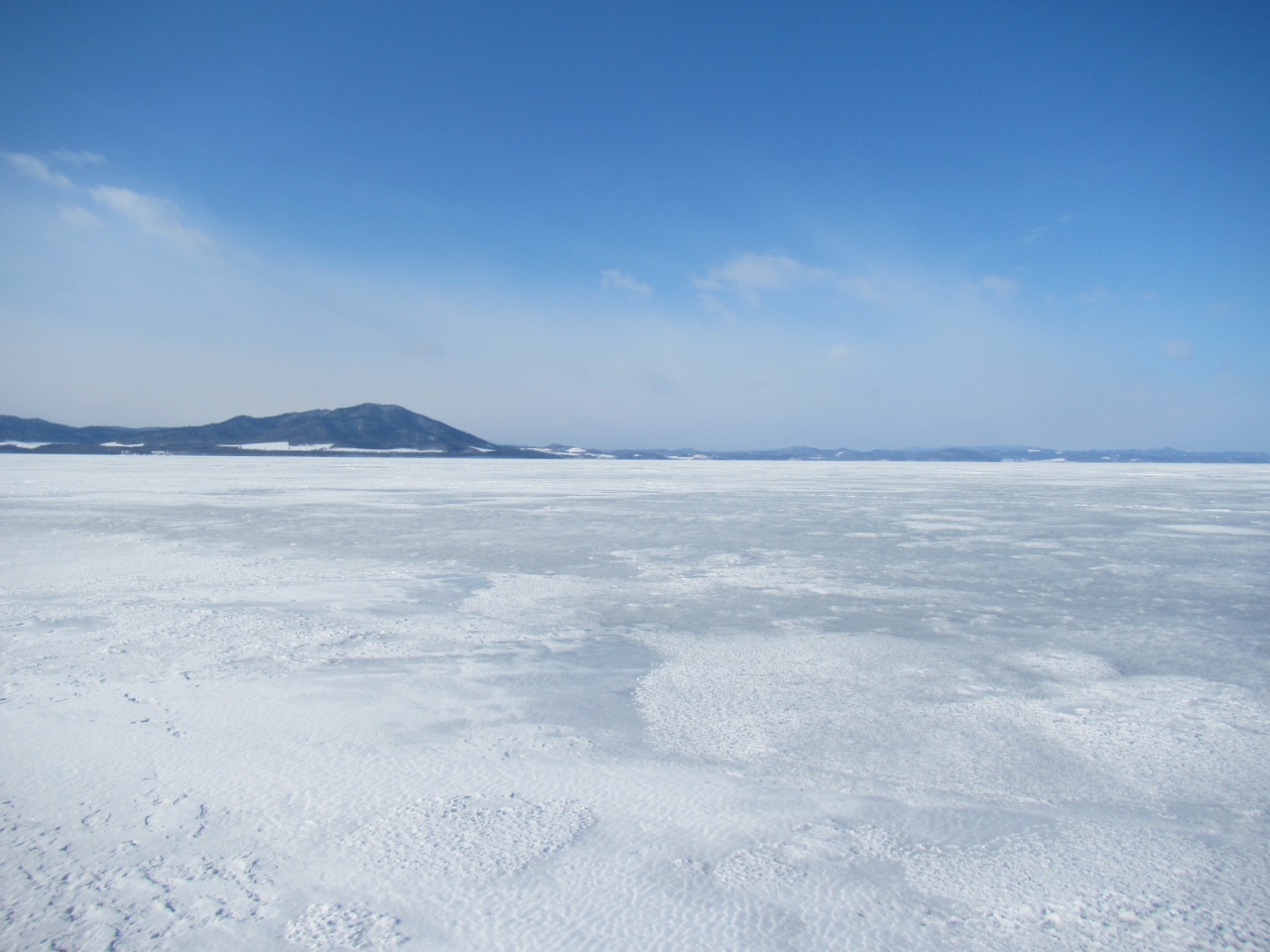 ちょうどオホーツク海の流氷が離れていたのですが、海とつながっている第一湖口のあたりは完全に溶けていました。