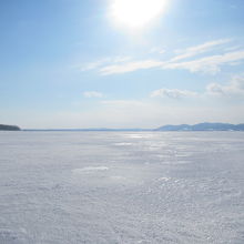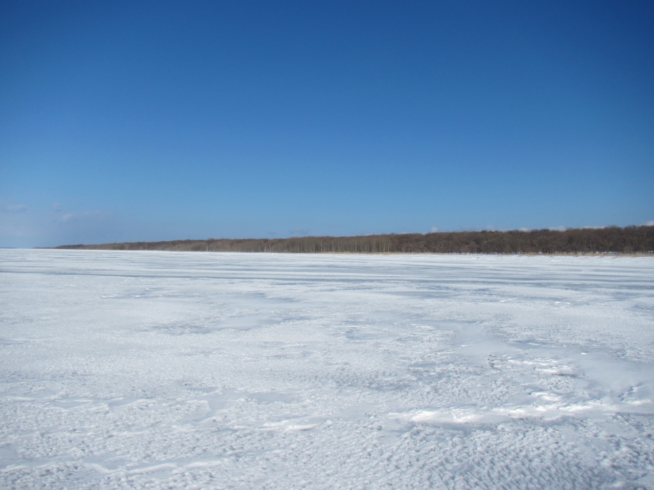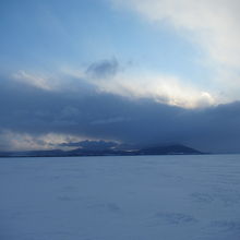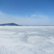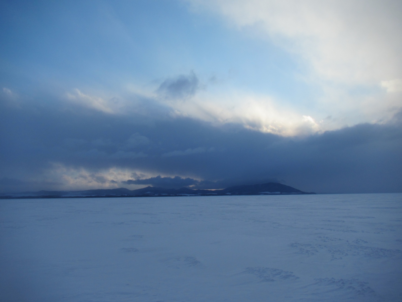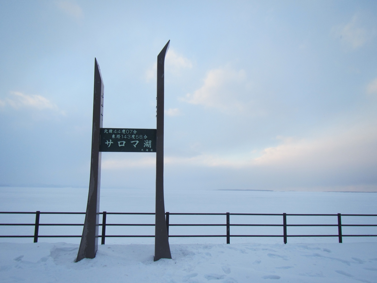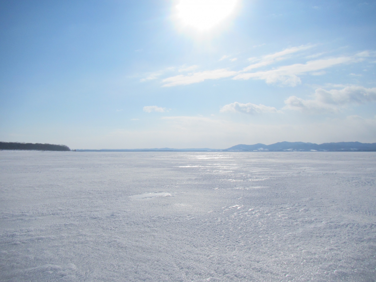 2月下旬、一面真っ白なサロマ湖が広がっていました。