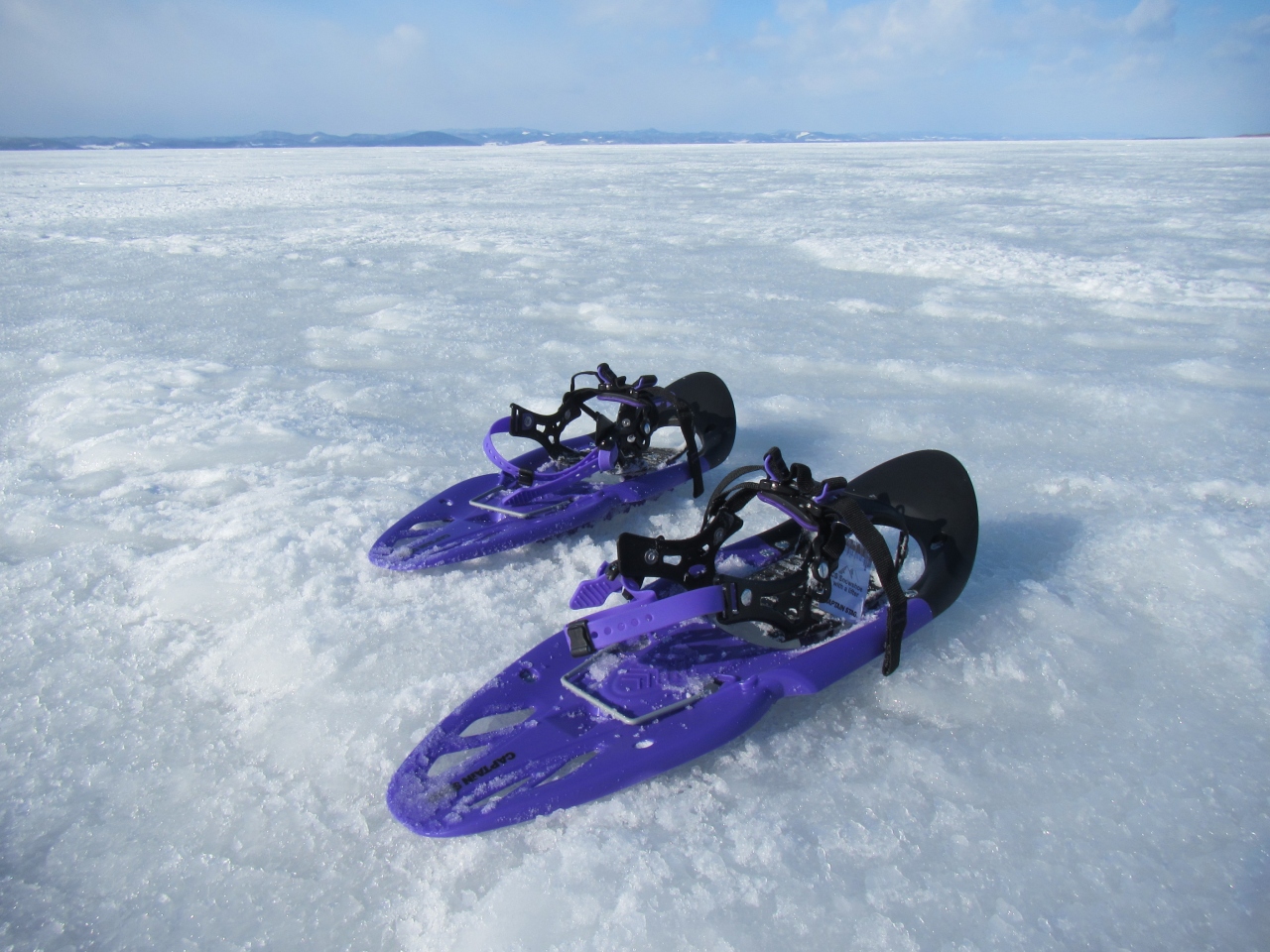 しかし、岸に近く、よく凍っている場所など、雪が膝下くらいまで積もっていて、スノーシューが必要な場所もありました。