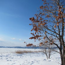 もっとも、湖の真ん中にも車のわだちの跡があって、スノーモービルもしくは雪上車等、なんらかの車両が通った跡のようでした。
