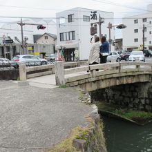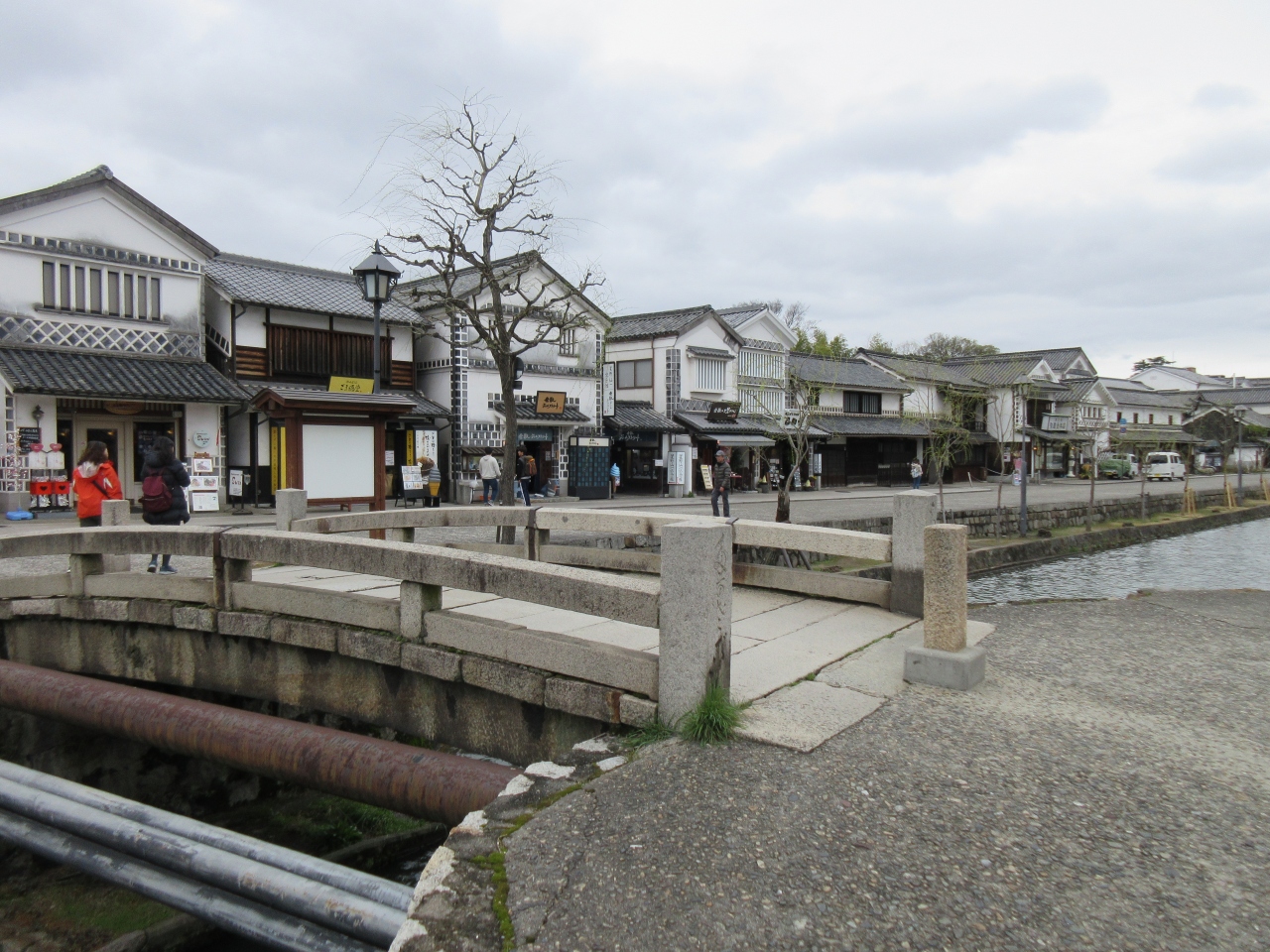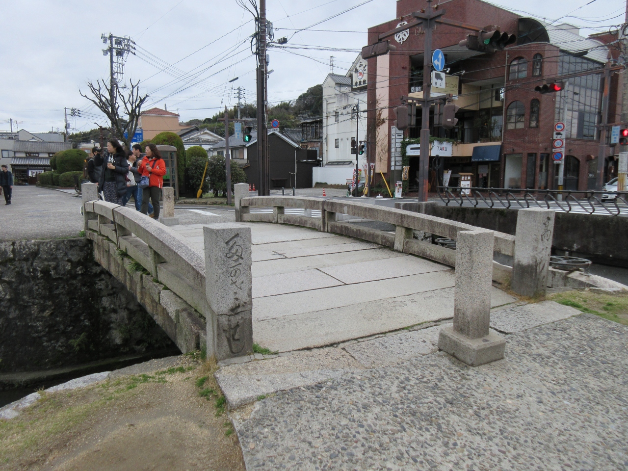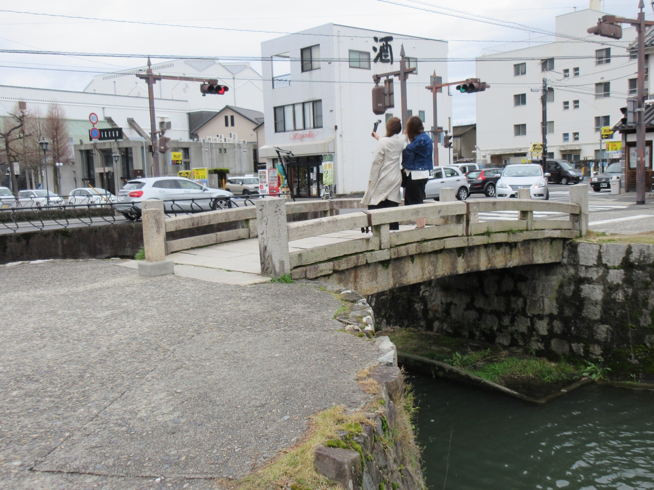 倉敷川に架かる橋の中で、倉敷美観地区内の最も南に架かる橋です。車が行き来する白壁通りが倉敷川を越える橋と並んで石橋が架かっています。南側から倉敷川筋の建物を見ると風情がありますが、北側から高砂橋を見ると味気ない感じになります。自撮りに適しているようで、若い人たちが川筋を背景に撮っていました。美観地区の南端の目安になります。