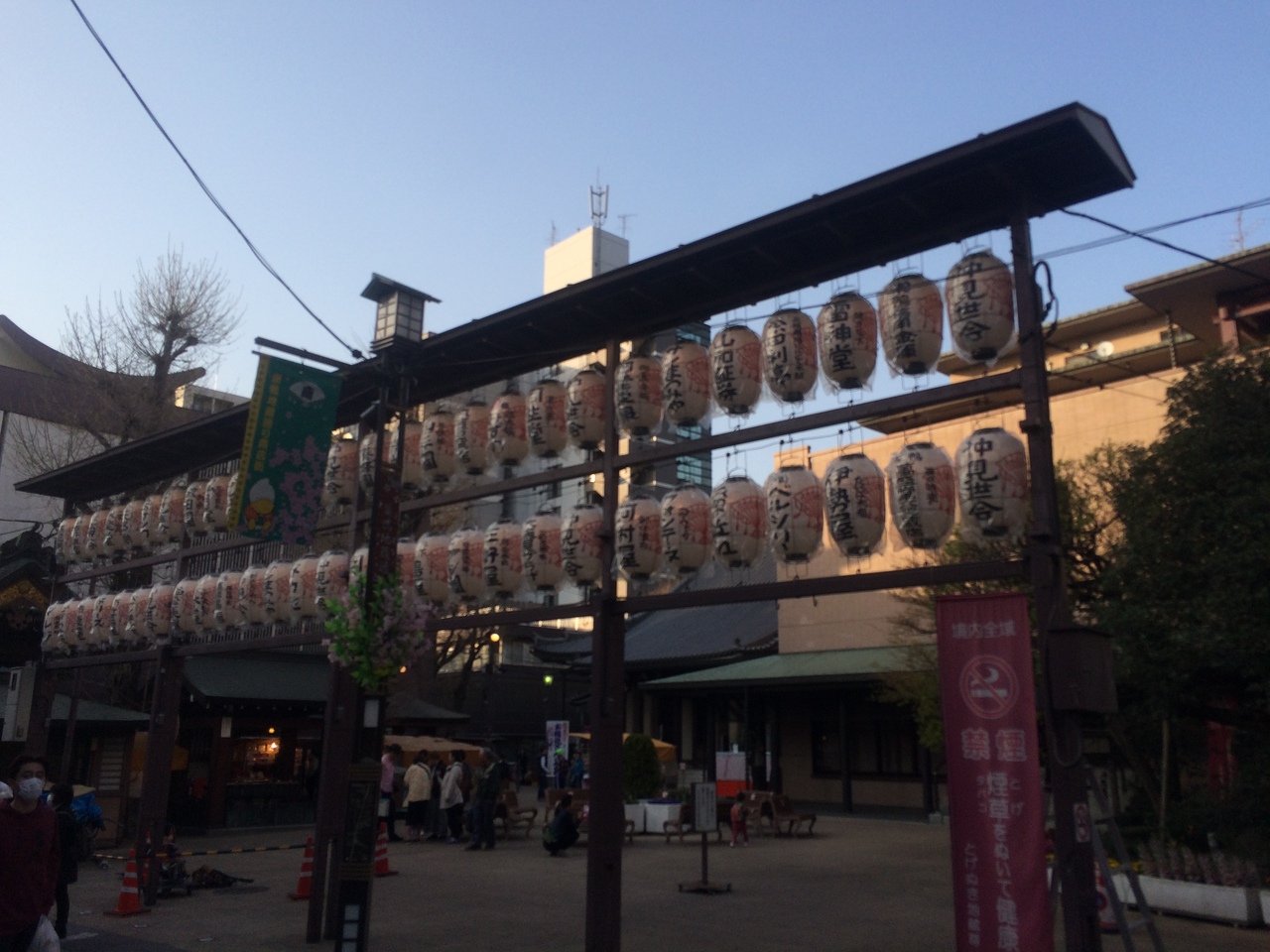 巣鴨地蔵通り商店街を巣鴨駅から歩くと3分ぐらいのところにありました。商店街で一番人が多かった場所で絶えず人の出入りがありました。敷居はなく門を潜るとすぐに本殿になっていて出店もいくつかありました。広場のようになっている場所があります。