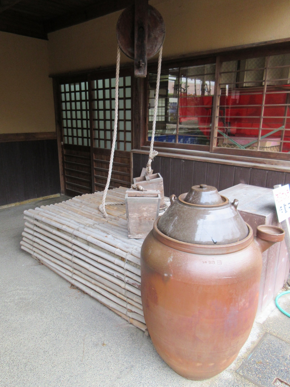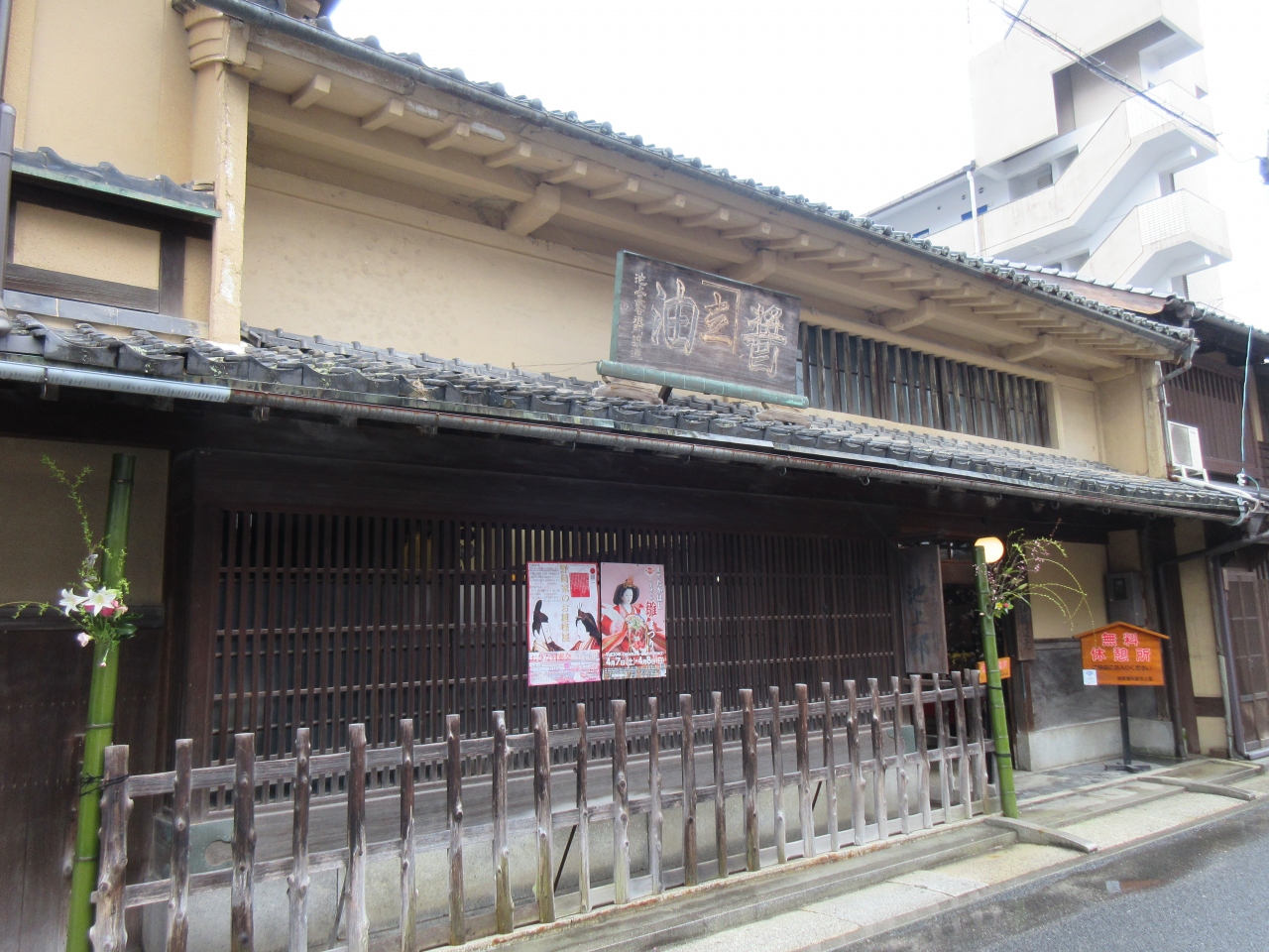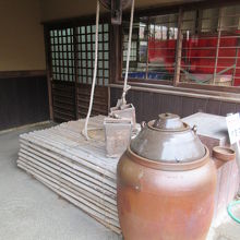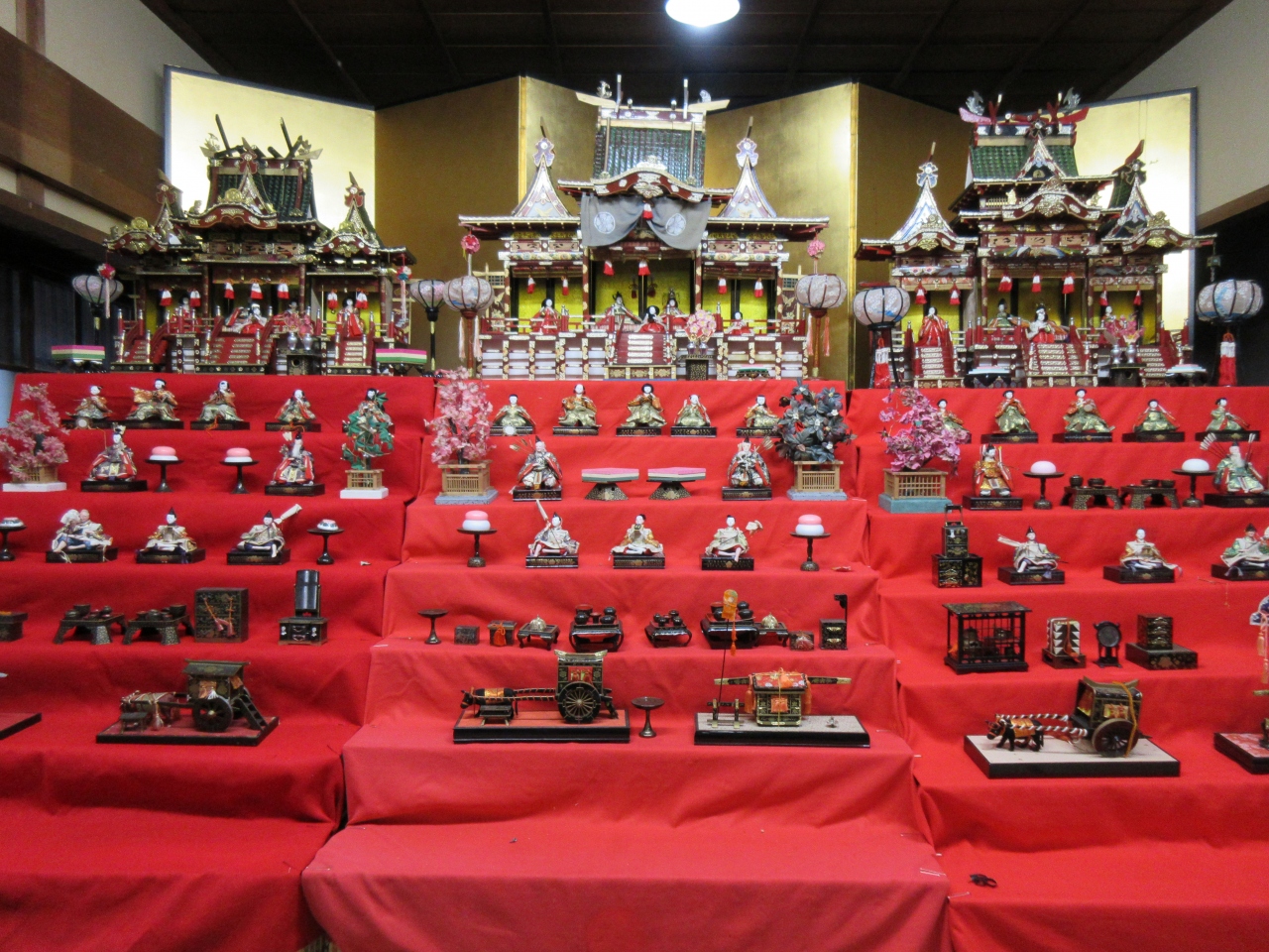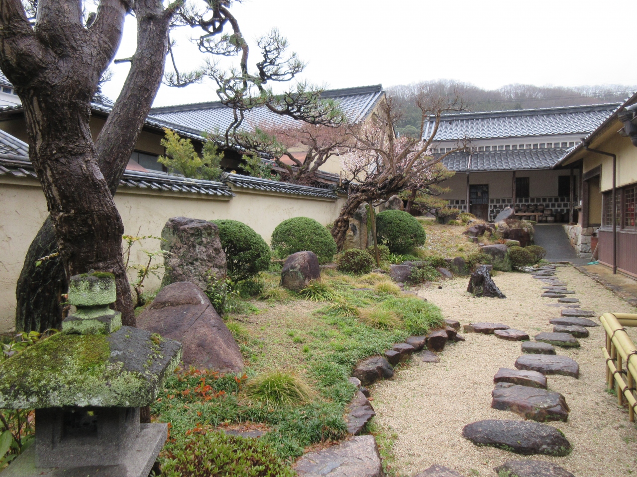商家資料館として高梁市観光案内図にのっている建物です。説明板はありませんでしたが、建物入口に醤油の看板があり、奥に蔵があったので醤油を製造していたことが分かります。作業小屋のようなところが無料休憩所になっています。訪れたのが3月だったからか、玄関入口に御殿雛が飾られていました。奥の蔵まで細長い庭園があります。雑然とした部屋に椅子があり、街歩きで疲れたら休めるようになっています。道具が建物の外にほこりをかぶって置かれていました。人がいないので静かに休みたい時にはいいかもしれません。
