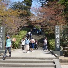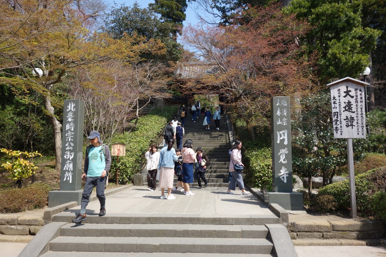 北鎌倉駅を出てすぐのところにある円覚寺です。ちょうど桜が咲く季節だったので平日にもかかわらず多くの人が訪れていました。石段を上がって山門を抜けると拝観料を納めて入場します。高低差のある石段が多い寺院で見学は良い運動にもなりました。