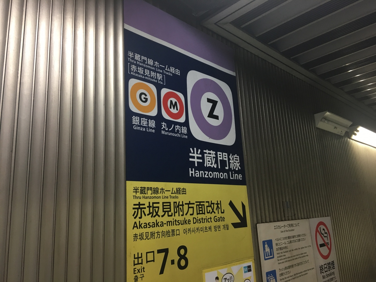 長津田から永田町へ東急田園都市線に乗ったところ、渋谷駅から先が乗り換え無しで半蔵門線となりました。紫色がイメージカラーです。開業して四十年になりますが、東京の地下鉄の中核としての地位を保っています。東京に来るたび乗っているような気がします。