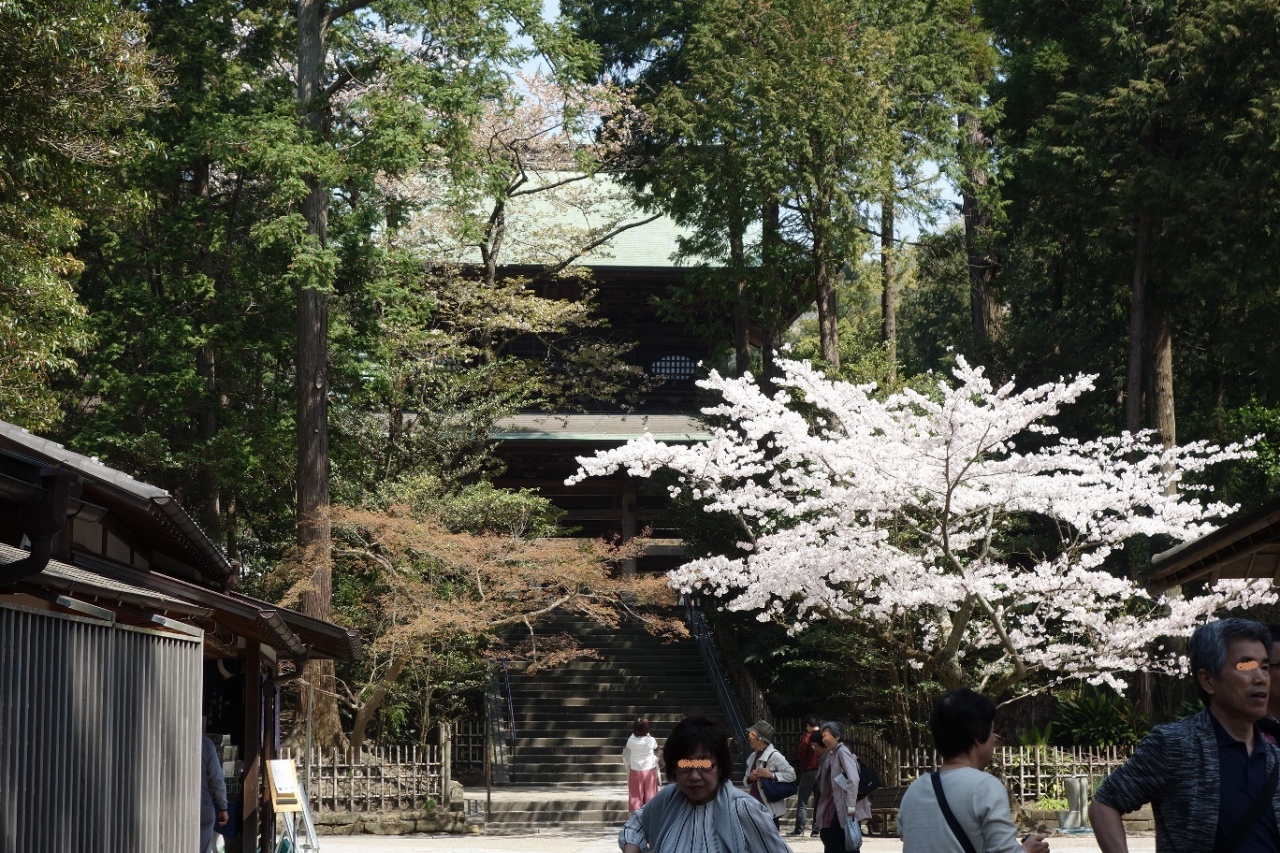 北鎌倉駅から近い円覚寺は大きなお寺です。石段を上がって総門を抜けると拝観料を納めて更に中へ入って三門を抜けて仏殿の方へ向かいます。山門は門というにはあまりにも立派で存在感が有りました。門の前にはちょうど満開の桜の木が有って美しい風景を演出していました。