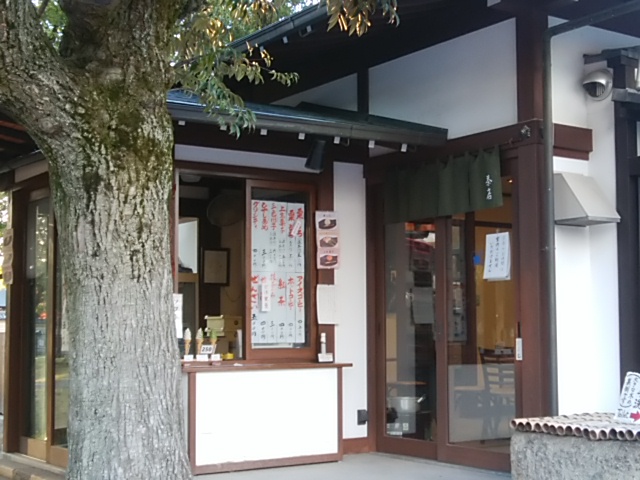 東寺へ…。ひとしきり紅葉を楽しんだ後は、こちらの茶店でなにか甘いものを頂くことに…。「ぜんざい」500円(税込)をお願いしました。
