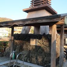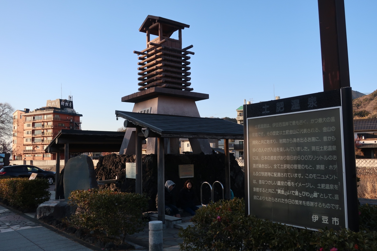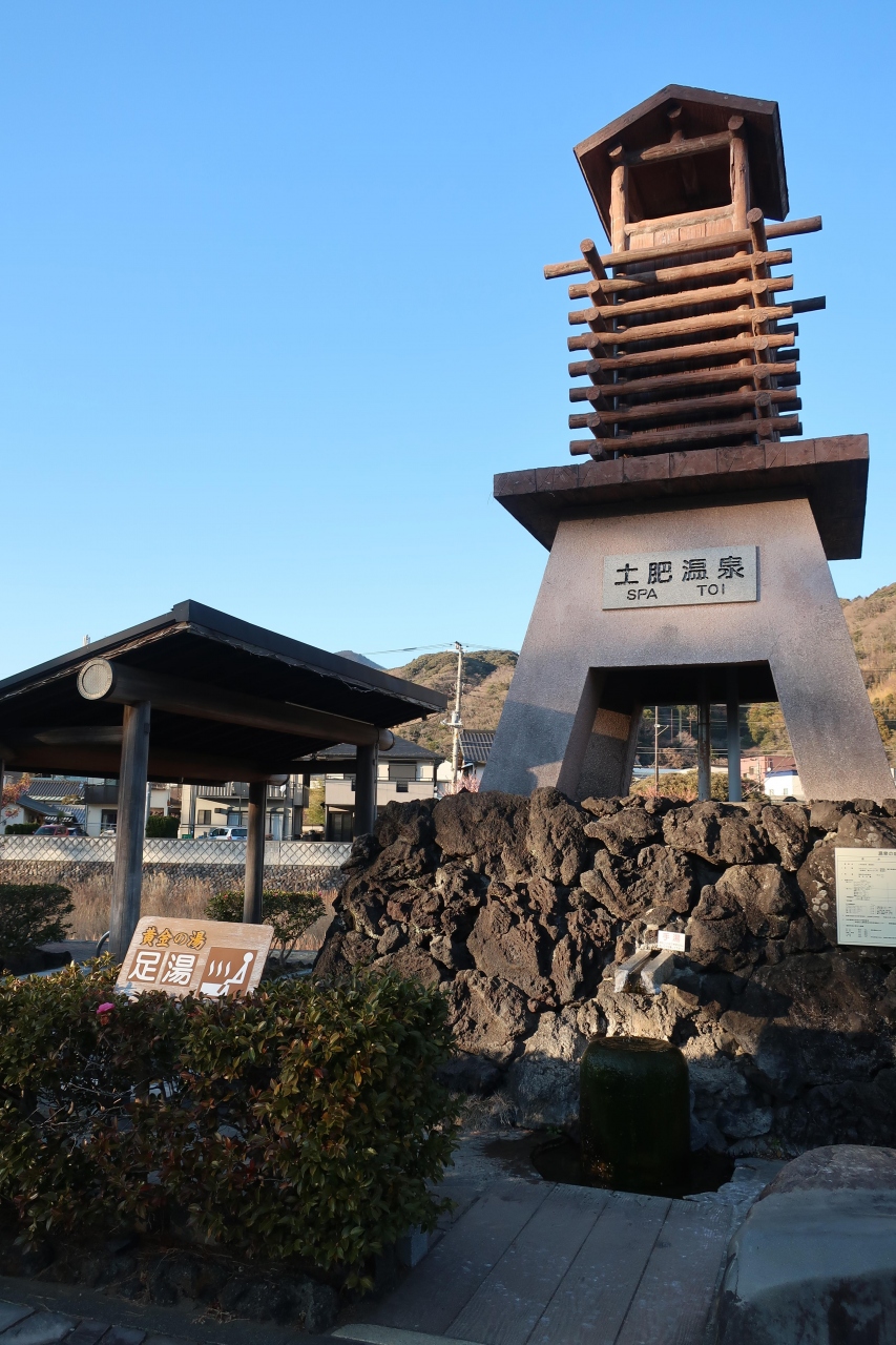 土肥温泉の松原公園にある花時計の近くに湯塔がありその両脇にある足湯が黄金の湯です。黄金の湯と言ってもお湯は透明。寒い日に浸かると体がポカポカしてきます。勿論無料です。正面真ん中には足湯ならぬ手湯までありますが、触るだけで飲むことは出来ません。