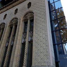この辺りはふつうのビルが並んでいて11階建てのこのビルも多くはガラス張りなのですが下層階の外壁の一部だけルネッサンスな意匠になっていて、ちょっと変わっています。