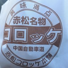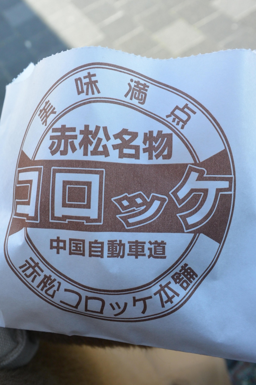 赤松コロッケが有名だというので購入してみました。一個150円で熱々をその場で食べました。中は、じゃがいもがほくほくというよりは、ちょっとトロットした感じで、それがまたおいしかったです。時間がないとき、小腹がすいた時、おすすめです。