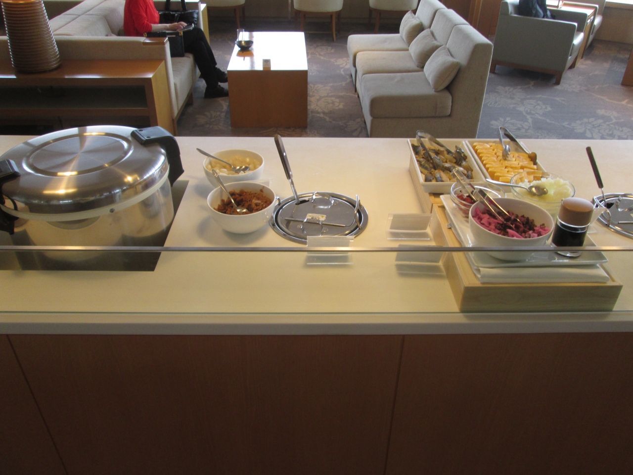 成田空港は朝11時過ぎると出発するJAL便が減ります。それにともない、サクララウンジの利用客もかなり減り落ち着きました。それでも、スタッフはフードメニューを補充したり、アルコール、スナック、ソフトドリンクまでもチェックをしていました。