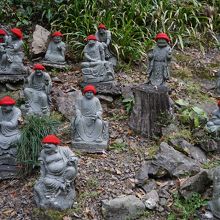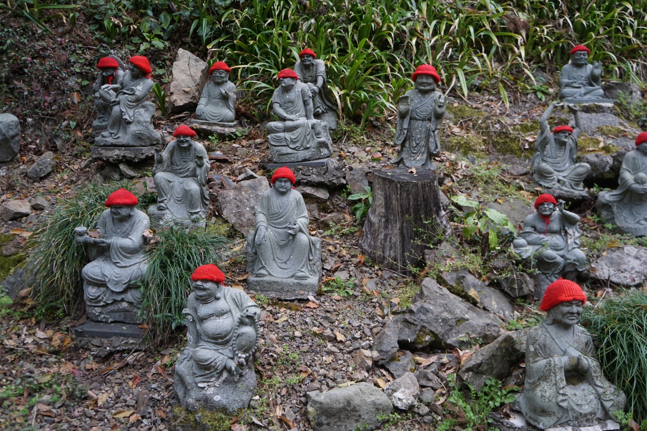 歓昌院は、吐月峰柴屋寺からさらに先に進んだ谷の一番奥。山門に続く参道沿いに、多くの石地蔵が並んでいて、それが赤い帽子を被っています。それだけでも、見入ってしまいますが、よく見ると、地蔵様というか、これは五百羅漢ですか。それぞれに表情豊かで個性的。一つ一つ見ると面白いです。