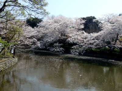 平日でしたが観光客が多くなかなかゆっくりはできませんでしたが、池に移る桜の反射、そして散った花弁が浮かんでいる様子はなかなか風情がありました。