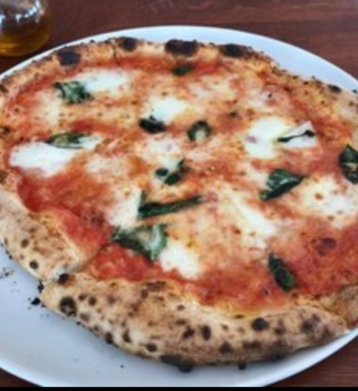 パスタランチもピザランチも1500円で、サラダとコーヒー、小菓子が付きます。わたしはピザランチのクワトロフォルマッジをチョイス。薄めの生地です。生地も上のチーズも美味しいー!サラダは苺が入ってておしゃれ。同行者のマルゲリータも美味しかったです。