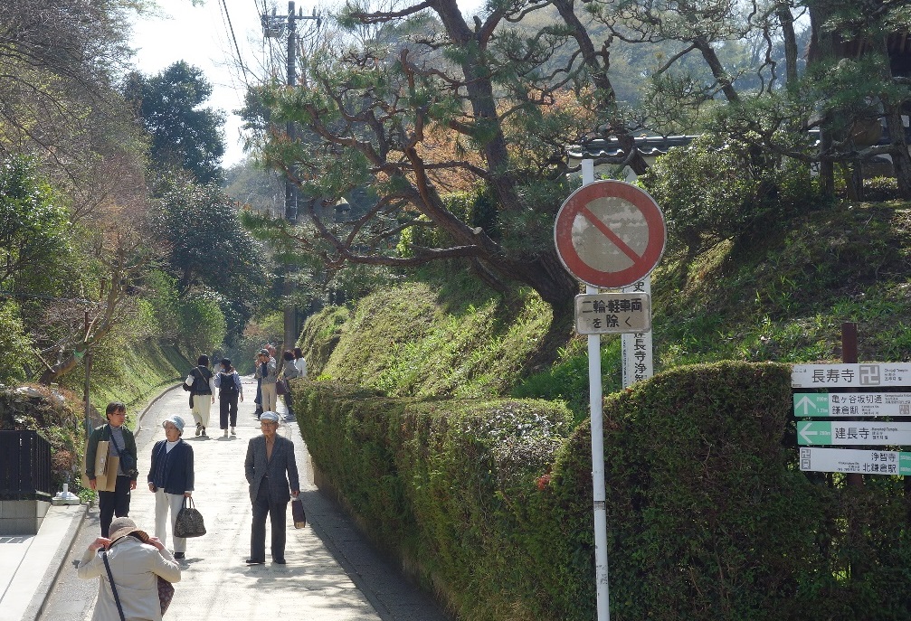 起伏の多いこの地域には切通しがよく見られます。こちらの亀ヶ谷坂は北鎌倉の長寿寺横の道を入っていったところにある抜け道で鎌倉駅方面へショートカット出来ます。途中で鶴岡八幡宮などへ寄らずに駅へ向かうなら坂はきついですが便利です。