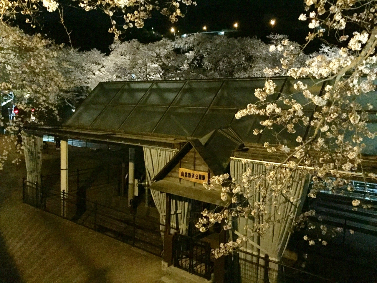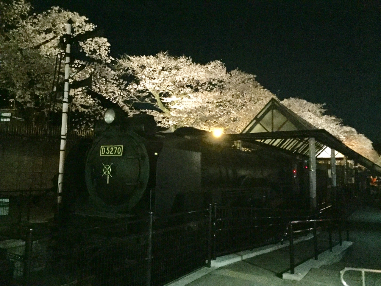 桜まつりの会場となる鉄道公園内には屋台が出店しており、手ぶらで来てもお花見の宴会を楽しめるセッティングとなっていました。4月になったら散ってしまうのでは?と危惧するほどに咲き誇っていました。ライトアップは21時まで。