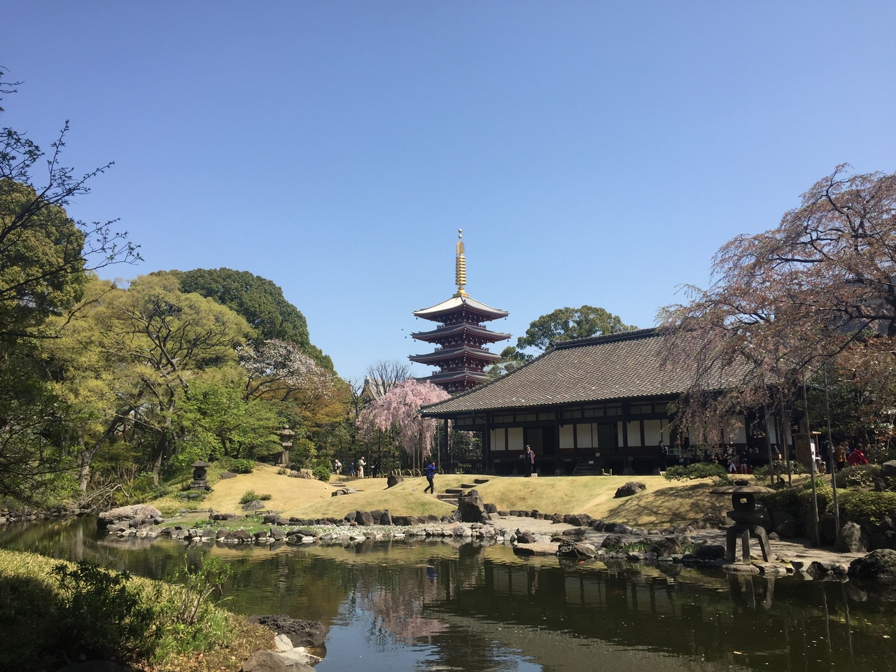 春の特別拝観に行ってきました。桜は満開過ぎていましたが、大絵馬もなかなか見ごたえあり、庭園は仲見世の喧騒と離れて静かに散策。途中、お茶のサービスもあり、のんびりできます。五重塔とスカイツリーを同時に写真に収めるにはコツがありそうです。