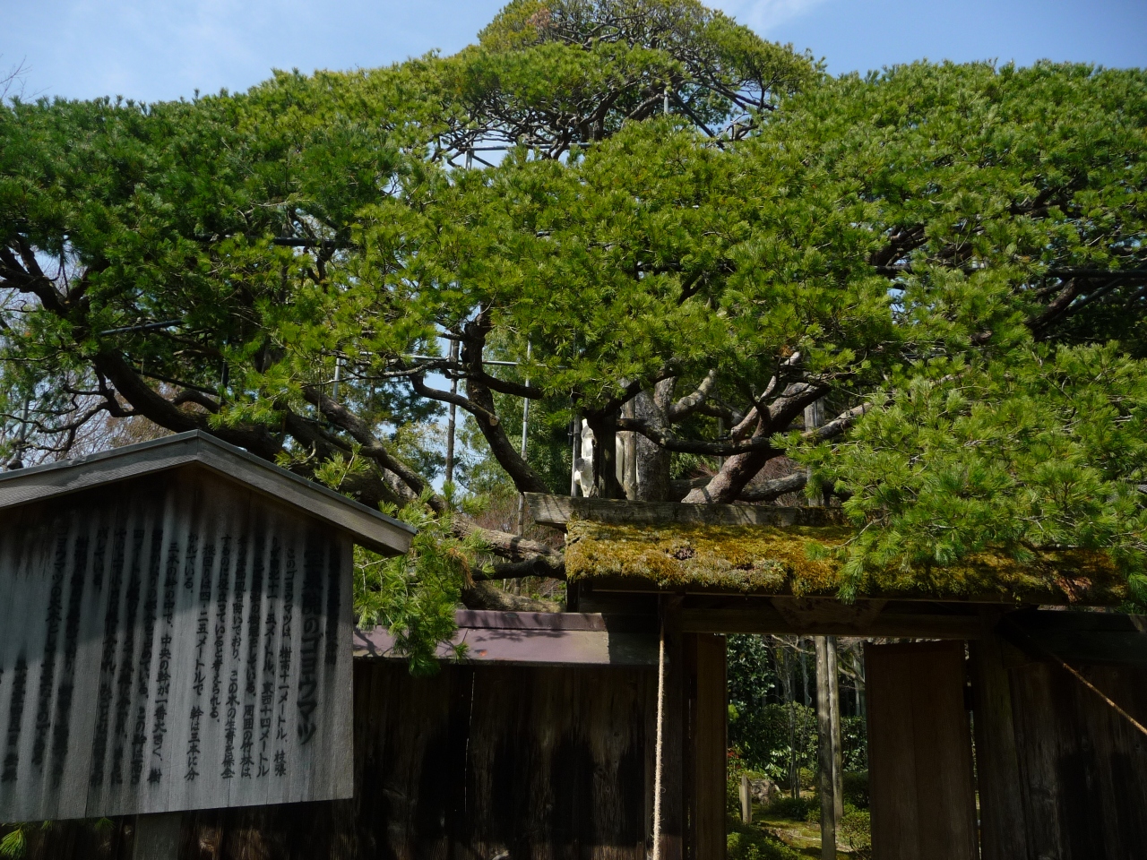 この五葉松の樹高は5mに達するほどのジャンボサイズ、樹齢600年とか、ということは室町時代後期に植えられた、、、。枝ぶりもよく、実に青々とした色合いで、垣根をはるかに超えてそびえている。