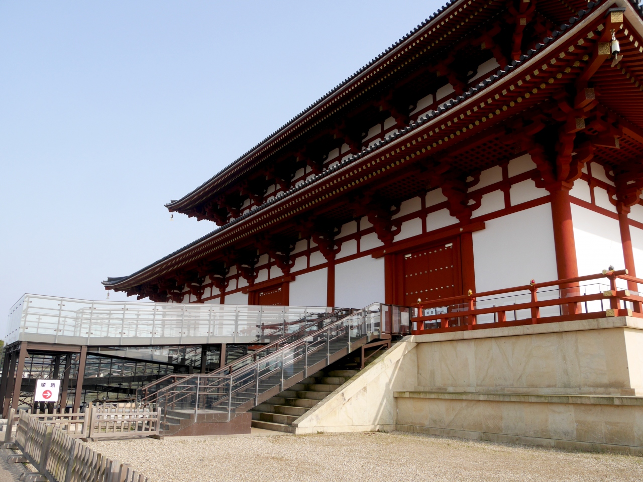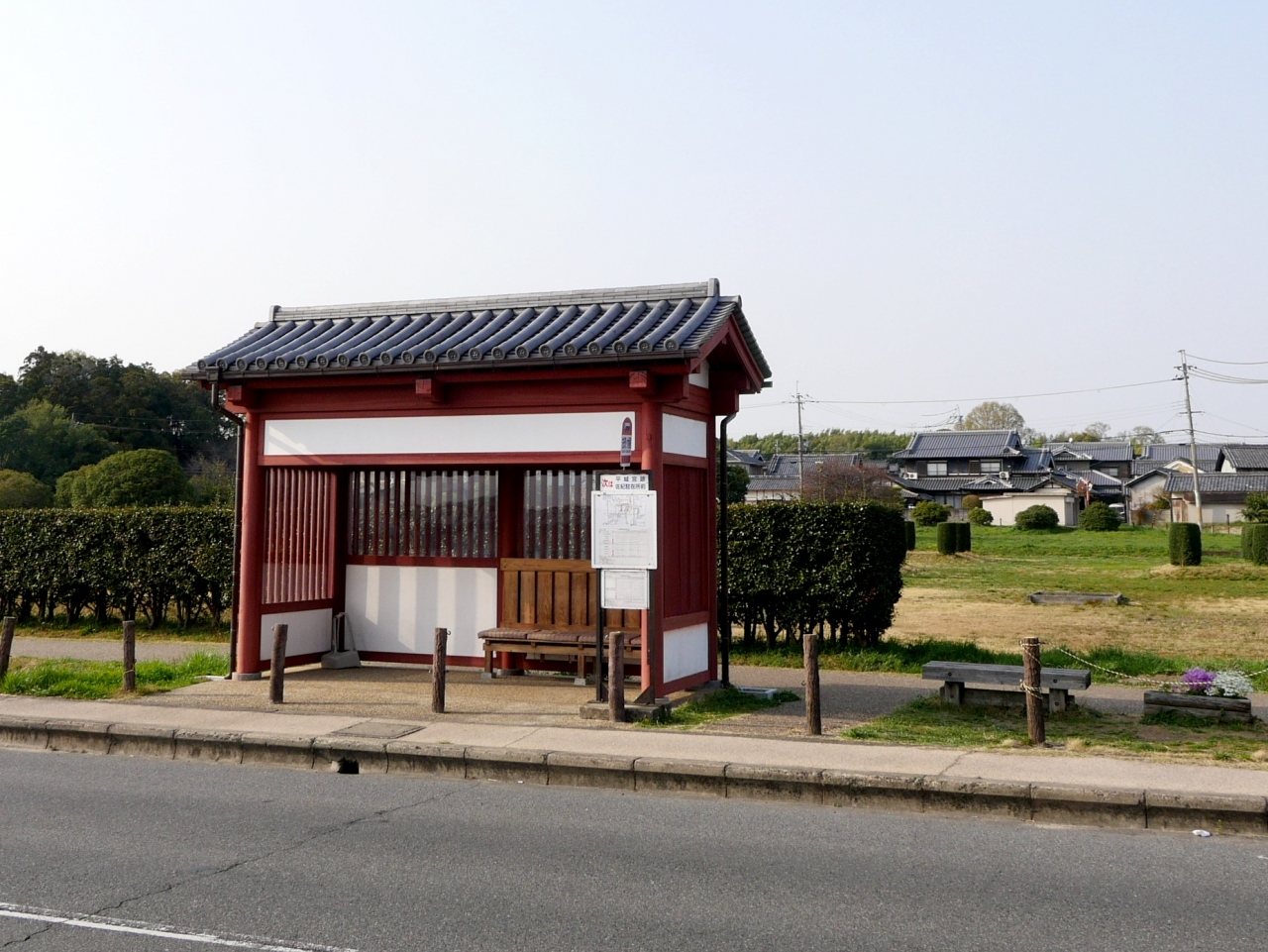 朱雀門の方から歩くと,第一次大極殿復原事業情報館を経て,第一次大極殿が終点となる.このまま資料館まで歩くのがいいが,疲れたらここからバスになる.目の前に佐紀町バス停 奈良方面行に乗り法華寺に途中下車してもいいし,奈良まで行ってもいい.反対側は大和西大寺行き こちらの方が近くて便利 10分弱で到着する 早く来た方に乗っても良い