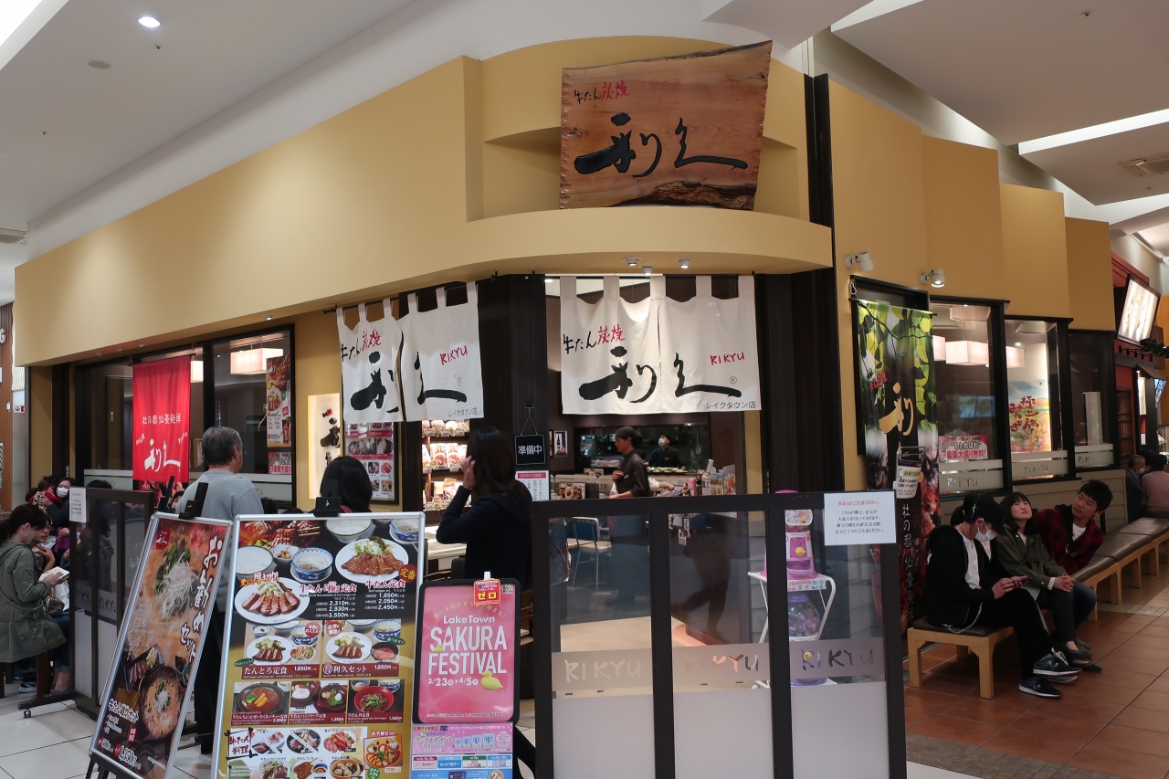 イオンレイクタウンmoriの1階にある仙台名物の牛タン焼きのお店です。開店前に11時前に行くとすでに長蛇の列。何とかギリギリで一番目のローテーションで入店できましたが、入れないと20分以上待ちになります。頂いたのは勿論牛タン定食。漬物と牛タン焼き、テールスープ、佃煮、麦飯の定食でとろろは付いて居ません。こりこりした触感が堪らなく美味しく、御飯が進みます。麦飯の大盛が無料サービスだったので助かりました。
