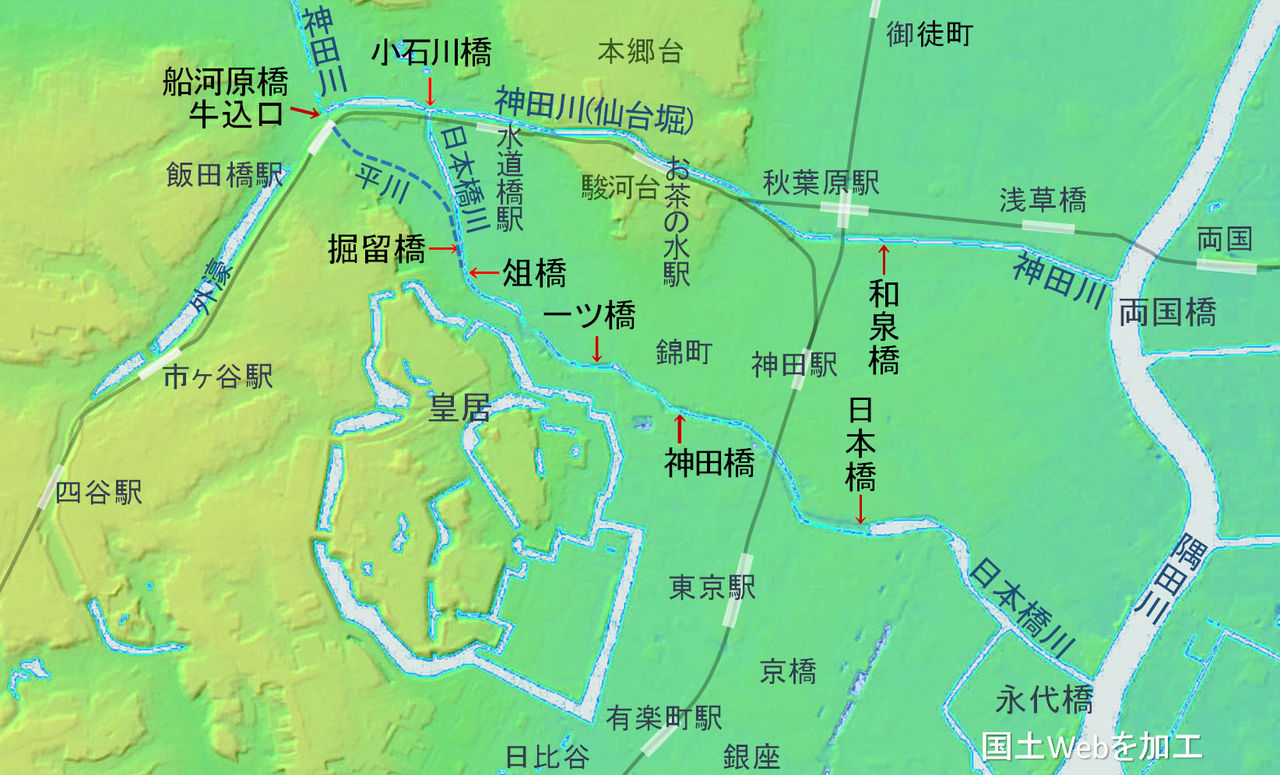 日本橋川は、江戸城の東側の防御や水運のため掘削された人工の河川です。
