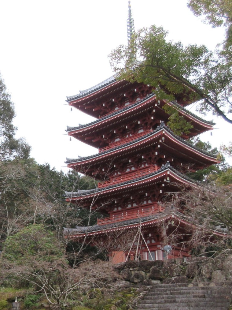 高知市内からのアクセスはあまり良いとは言えませんが、五台山に建つ高知の名刹「竹林寺」の中でもひときわ目立つ、朱色の美しいフォルムの塔です。建てられたのは戦後になってからで、元は三重塔が建っていたのだとか。そういう意味では今の塔の歴史は浅いですが、五重塔を研究した結果なのでしょう、非常に均整のとれた美しい塔でほれぼれしました。