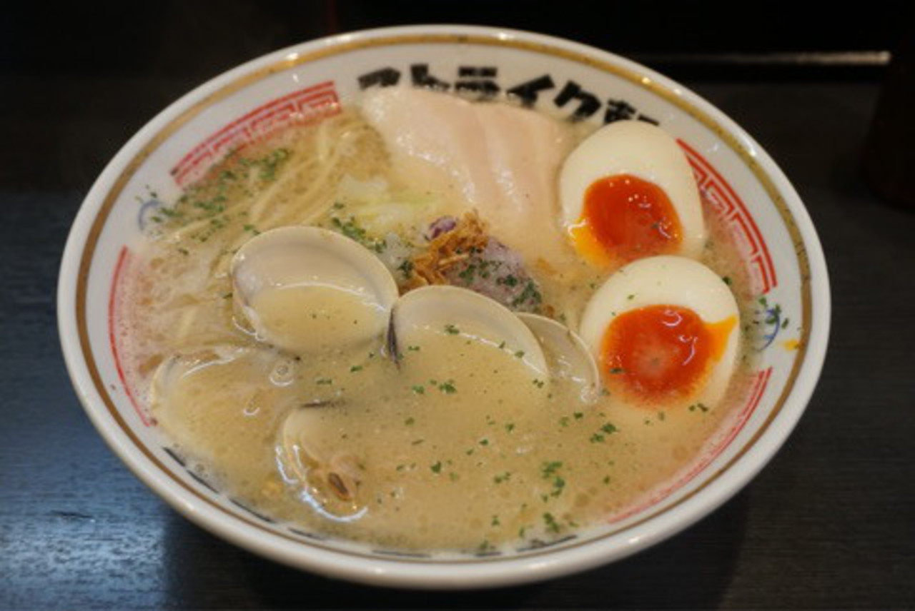 とろみのある白湯スープで、蛤やホタテの旨味が溶け込んでおります。この濃厚なスープが二日酔いの胃に心地よく沁みていきます。鶏ガラへのこだわりも強いが、蛤も名産地の桑名のものを使用してます。しかも、ほのかにトリュフの香りも感じる贅沢な一杯になってます。
