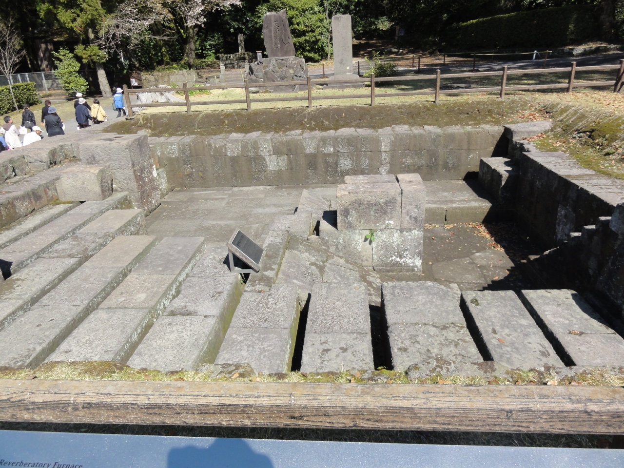 基礎の石組みだけでは反射炉と行っても想像できません。島津斉彬が日本を守るのに必要な大砲を作る為に作らせたもので、煙突のようなものは別なところに復元展示していました。オランダの書物を参考に石垣を作る技術を応用したり、薩摩焼でレンガを作ったり試行錯誤したようです。全体の模型は尚古集成館にありました。
