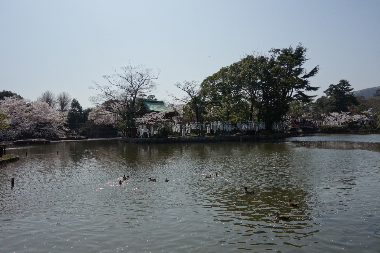 大きな境内を有する鶴岡八幡宮には池も有ってこの時期は淵に咲く桜の花びらが池に落ちてそれはそれは美しい姿を見せてくれていました。多くのカメラを持った人たちが池のほとりで良い画像を撮ろうと構えていました。池には幾つかの島が有ったり水鳥が遊んでいてのどかでした。