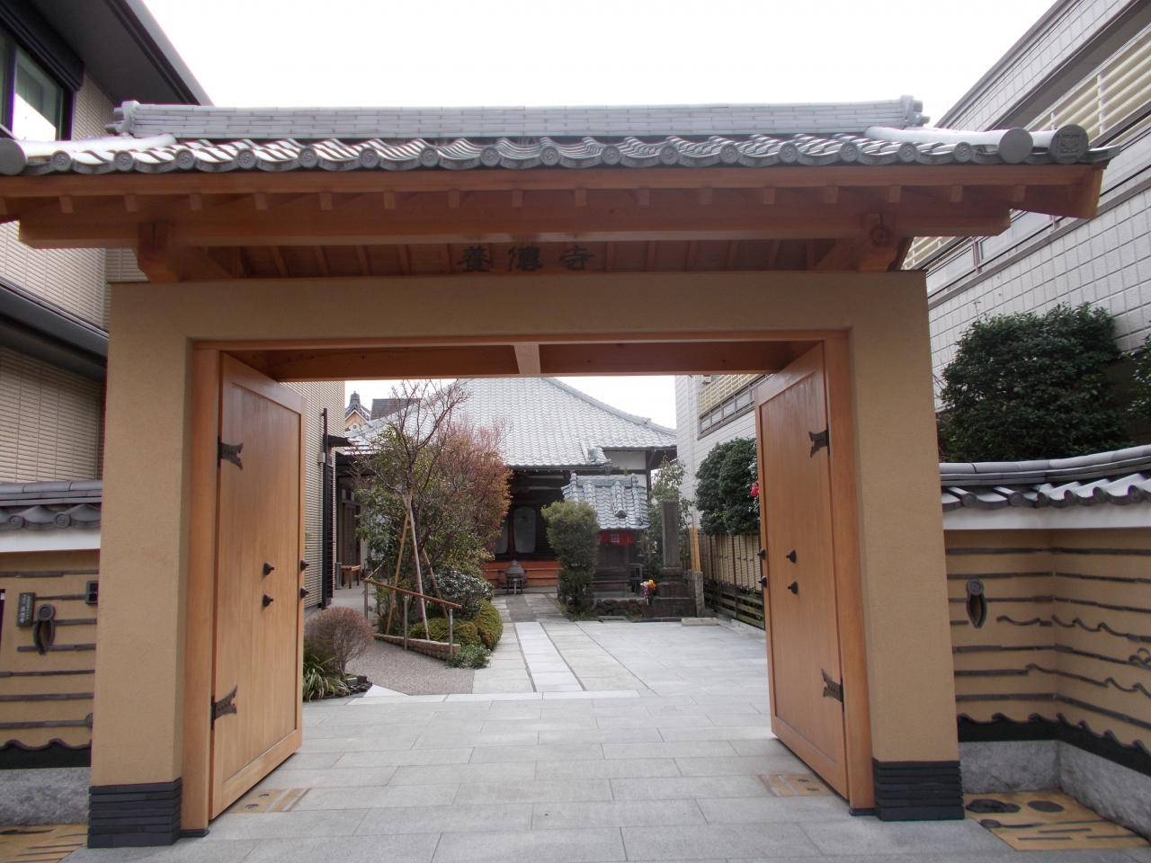 この養傳寺は17世紀後半に創建されました。谷中の寺が集まっているエリアの中にあります。山門は新しい現代的な景観ですが本堂は昔ながらの景観です。本堂前に古さを感じる祠があります。門が寺の雰囲気に合うようになるには時が必要です。