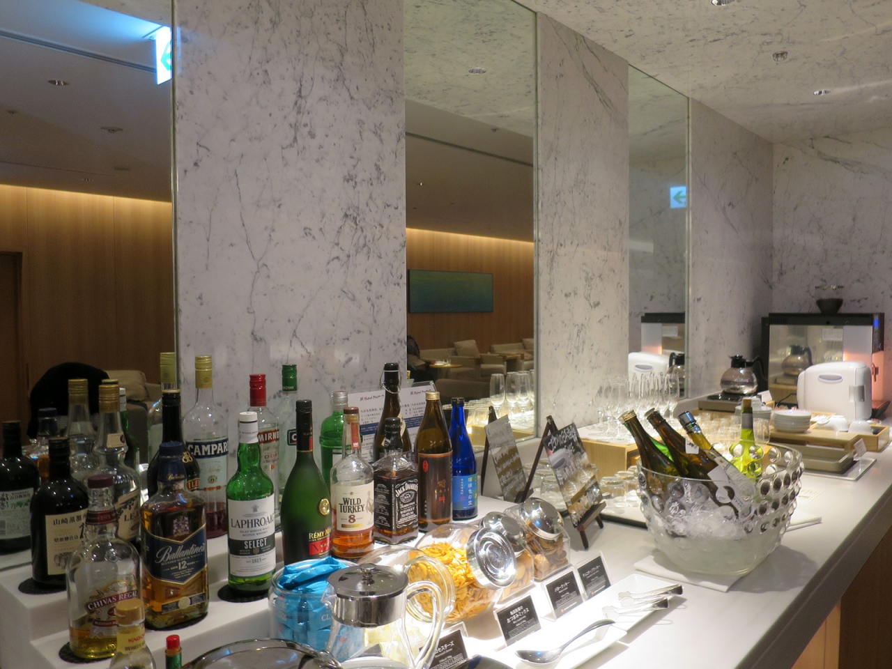 - JALらしいアースカラー、広さもたっぷり、座席間も余裕がありますし、バーカウンターなんかも嬉しいです