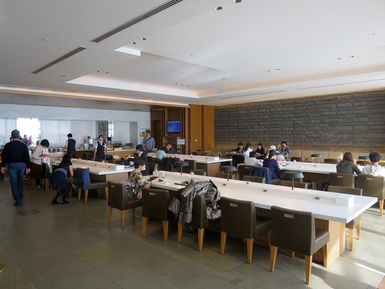 羽田や関空は数回経験がありますが、成田空港でJALのラウンジに入室する機会は…かつて一度あったかどうか。そんなこともあってフライト前の一大イベントとして楽しみにしていました。まずは本館ファーストクラスラウンジと同じ入口の4階ラウンジ。そんなに広くはないものの、JALらしいアースカラーで落ち着いた雰囲気です。美味しい日本酒3種など酒類のレパートリーはなかなか良いです。スープは2種類、メゾンカイザーのパン、小皿に盛られた和惣菜など、それぞれ質が高いです。次は3階の入口からエスカレーターで2階に降りると、そこは大きな窓から駐機スポットを眺められる広いラウンジでした。デザインは4階ラウンジと同じですが、座席・テーブルに余裕があって、とてもお心地が良いです。ラウンジ内の螺旋階段を上った3階がダイニングルームになっていました。メニューはもちろん4階ラウンジと同じですが、盛り方は大皿でした。接客応対もJALらしい慎みをもったもので、大変に居心地がよかったです。