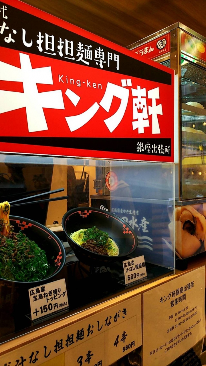 広島県のアンテナショップ(銀座)内の一角にある「広島式汁なし担々麺」を食べることができるお店です。お店と言ってもジェラードなどを食べることができるイートインスペースのようなところですが、汁なし担々麺は美味しいのでオススメです。