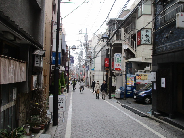 JR飯田橋駅西口を出て神楽坂下交差点から神楽坂早稲田通りを進み善国寺の右手にある本多横丁に歩いて5分ぐらいで着きます。本多横丁は神楽坂の中では比較的広い通りで敷居が高そうな老舗店や隠れ家的な飲食店舗が並んでいて情緒のある通りで休日は多くの人で賑わっています。名前の由来は江戸時代、この辺り全域が本多家の屋敷だった為に名付けられましたそうです。リーズナブルな立ち飲みのバーや洒落たビストロ、和食の店舗が多いのでノンビリ歩きながらお気に入りのお店を探し入店してみることをお勧めします。