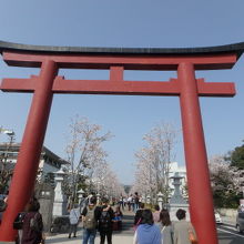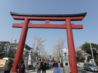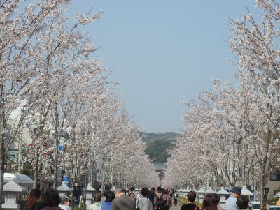 鶴岡八幡宮へとまっすぐと続く一本道の両側には桜が。