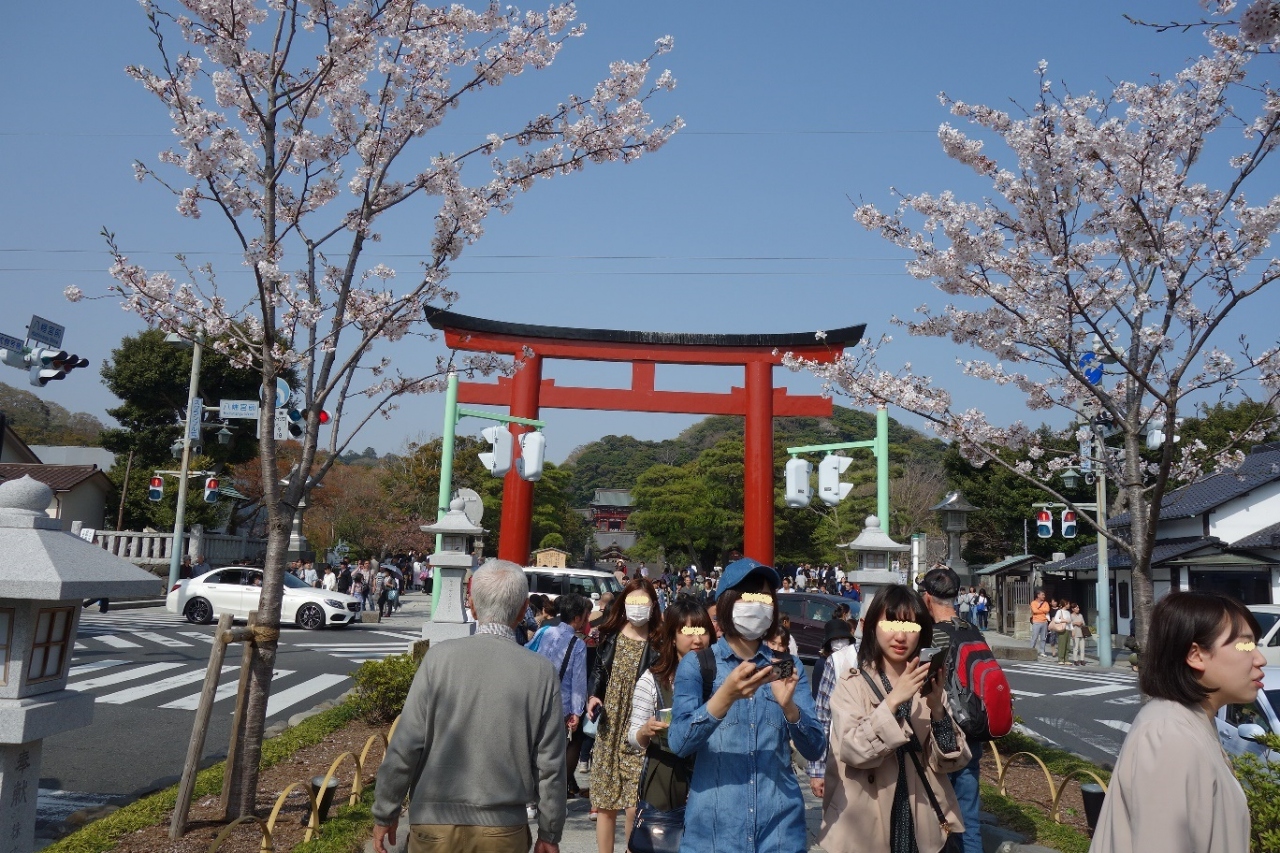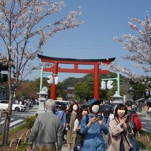 鎌倉の鶴岡八幡宮の手前には3つの鳥居が有ります。こちら三の鳥居は境内に一番近いものになります。鎌倉を代表する観光地でもある八幡神宮の鳥居は朱色の立派なものでここを抜けるといよいよ神聖な地に足を踏み入れた気分になりました。