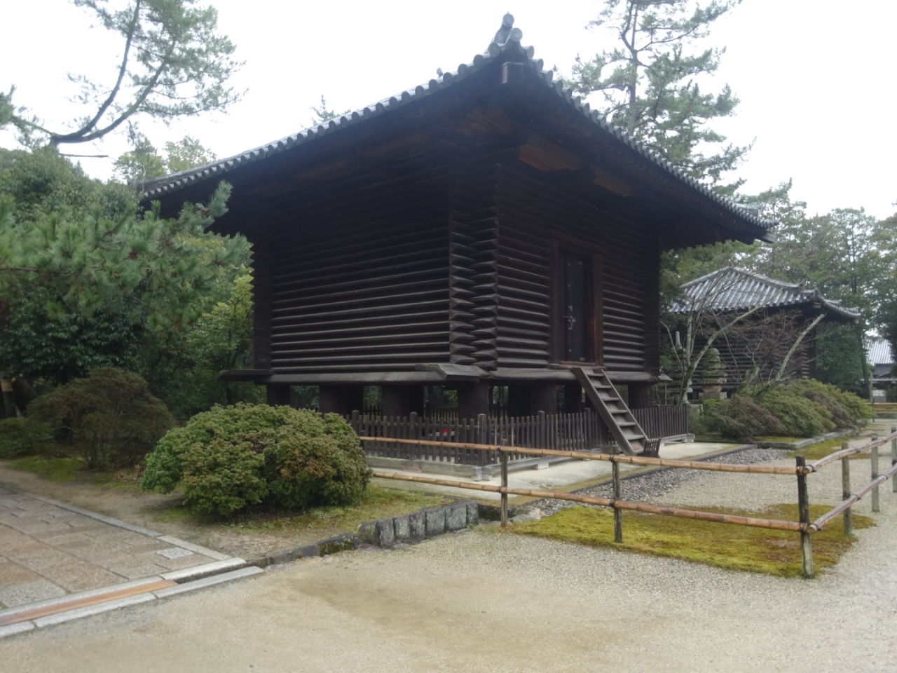 高床式の校倉造りの建物で、普段目にすることのない建築方式なので色彩は地味ですが、見ていて楽しかったです。似たような建物でもう少し小さい宝蔵と並んでました。