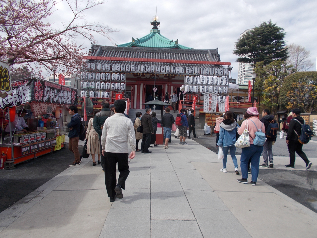 この不忍池にある弁天堂は17世紀前半に寛永寺のお堂の一つとして造られました。不忍池の島を琵琶湖にある竹生島に見立て多のです。弁財天は音楽と芸能の神です。また金運上昇の神としても人気があります。この弁天堂は谷中の七福神の一つで正月から人であふれます。橋の両側には出店がいつも出ています。