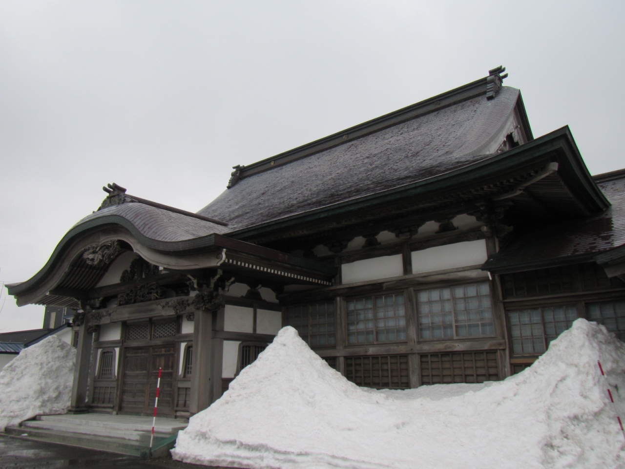 お寺は、沖見町という住所からも、留萌の海側の高台にあるのですが、留萌開発建設部など、周辺に建物があって、境内からはもう少しで海が見えそうで見えないところが残念です。