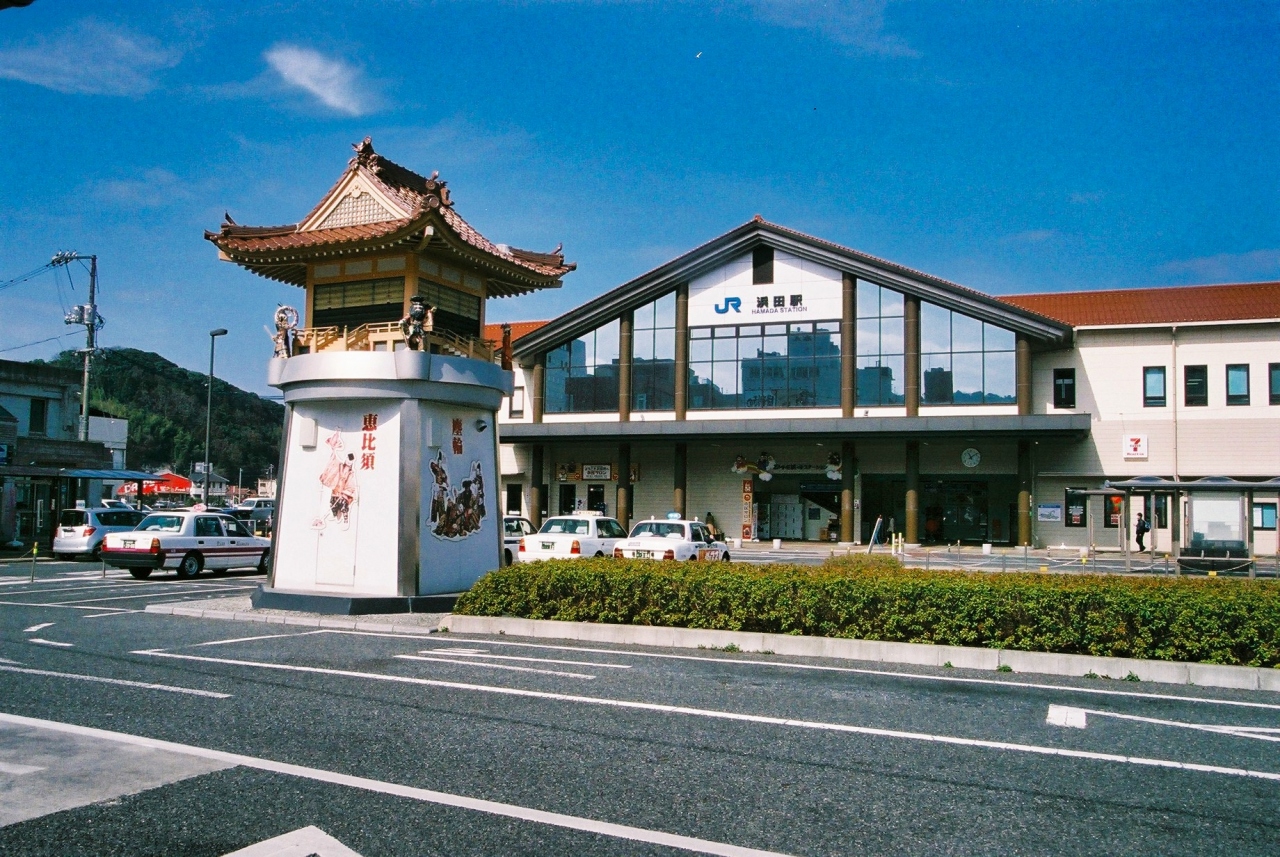 JR浜田駅前にある〝どんちっち神楽時計〟は平成15(2003)年10月に日本宝くじ協会の助成により建立されたものになります。名前の由来である〝どんちっち〟とは、地元の子供達がお囃子のリズムから石見神楽のことを〝どんちっち〟と呼ぶことにちなんで名づけられたそうです。