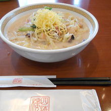 スープはクリーミーで動物系のだしがやや強めか。ちゃんぽんのつるっとした食感がおいしい。具材の海鮮はゲソが目立つ。海老は小さくて存在感ない。かまぼこもペラペラです。これらはスープ味出しのためのものだと思って食べました。