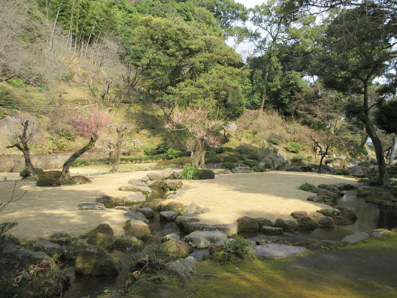中国から伝わった曲水の宴を催す庭園が、仙厳園の中にある日本の裏山に残さされていました。滝の横の急坂を上った先にあり、上りは少し大変でしたが、緑豊かな山懐に抱かれた清々しい空気が流れていて、庭に足を踏み入れることはできませんでしたが、柵の外から御庭の様子を眺めて当時を想像することが出来ました。