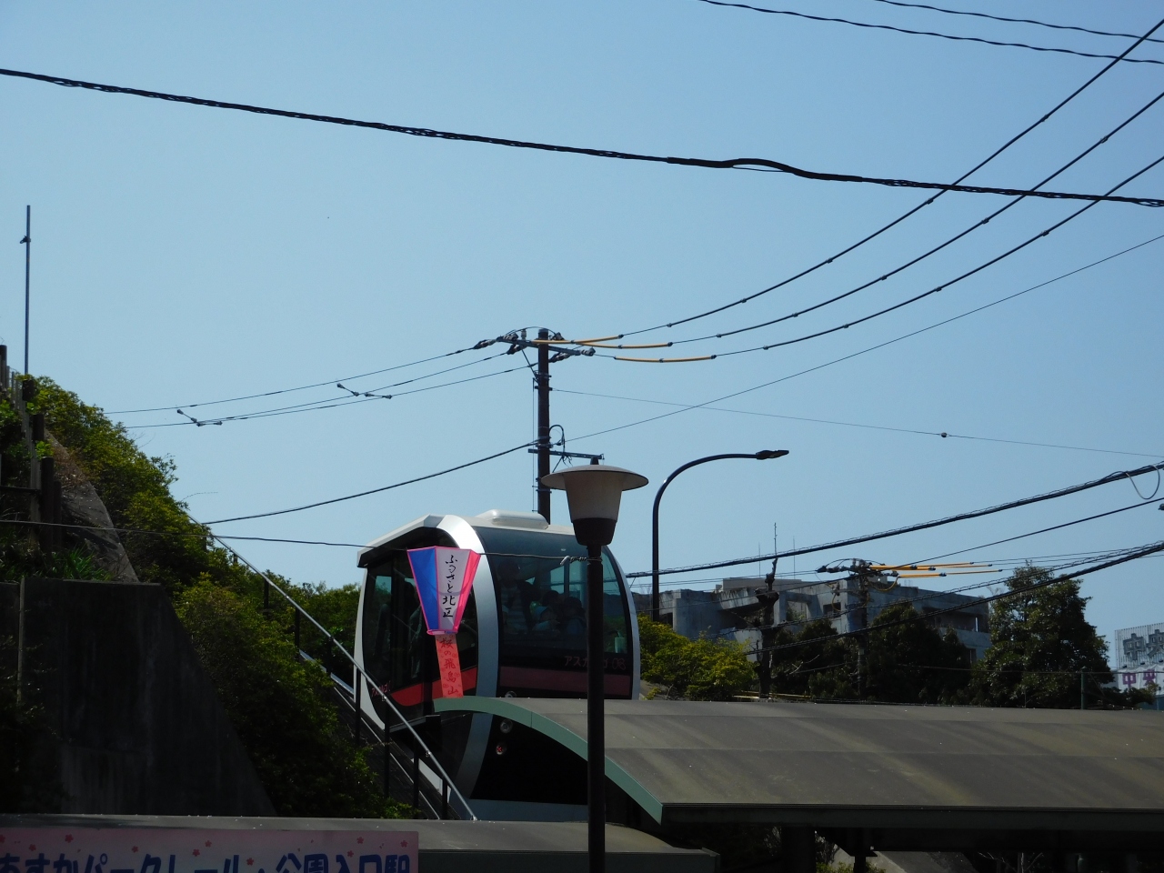 王子駅近くの乗り場から飛鳥山公園の山頂までを、のんびりと結んでいる無料のモノレールです。ちょうどお花見の時期で、ベビーカーも利用出来るので、階段を上るのが大変な家族連れやご年配の方々が多く列を作って並んでいました。かたつむりのような独特なデザインで、ほっこりとした気分になれる乗り物でした。北とぴあの展望台からも見る事が出来ました。