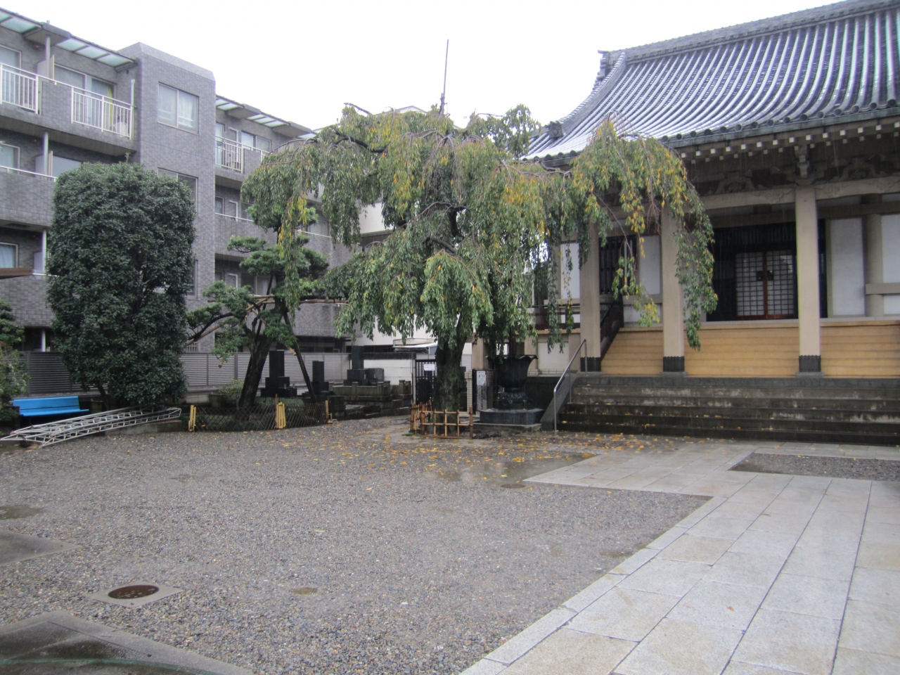 西応寺は、東京都新宿区須賀町にある真宗大谷派の寺院です。クラシックな雰囲気の山門をくぐると、わりと立派な本堂がありました。砂利の敷かれた境内は少し公園のようでした。江戸幕府幕臣の剣術家である榊原鍵吉さんのお墓があります。