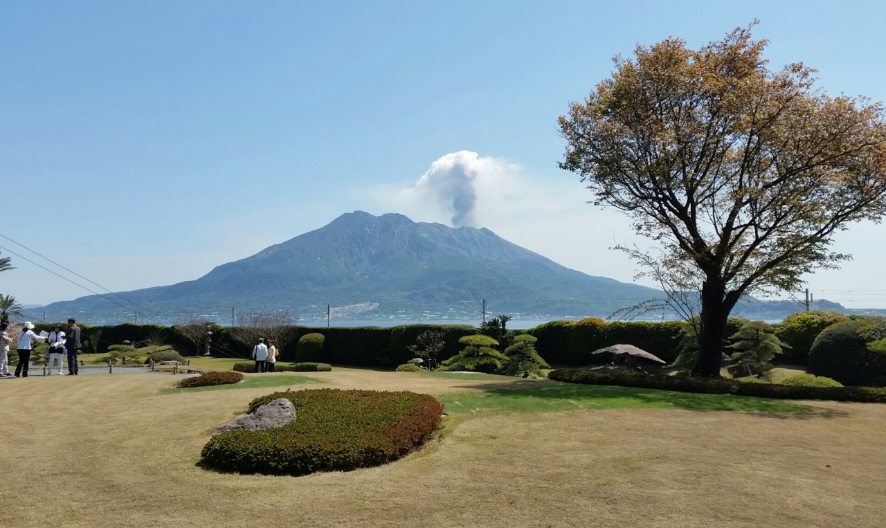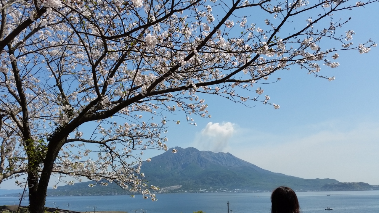 仙厳園の中で桜島が見えるスポットはいくつかあります。確かにお庭から桜島が見えるのは素晴らしい。人によってこだわりがあるとは思いますが、私は、この季節は、美しく咲く桜の枝と、桜島の両方が入るスポットの方を、お勧めします。