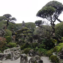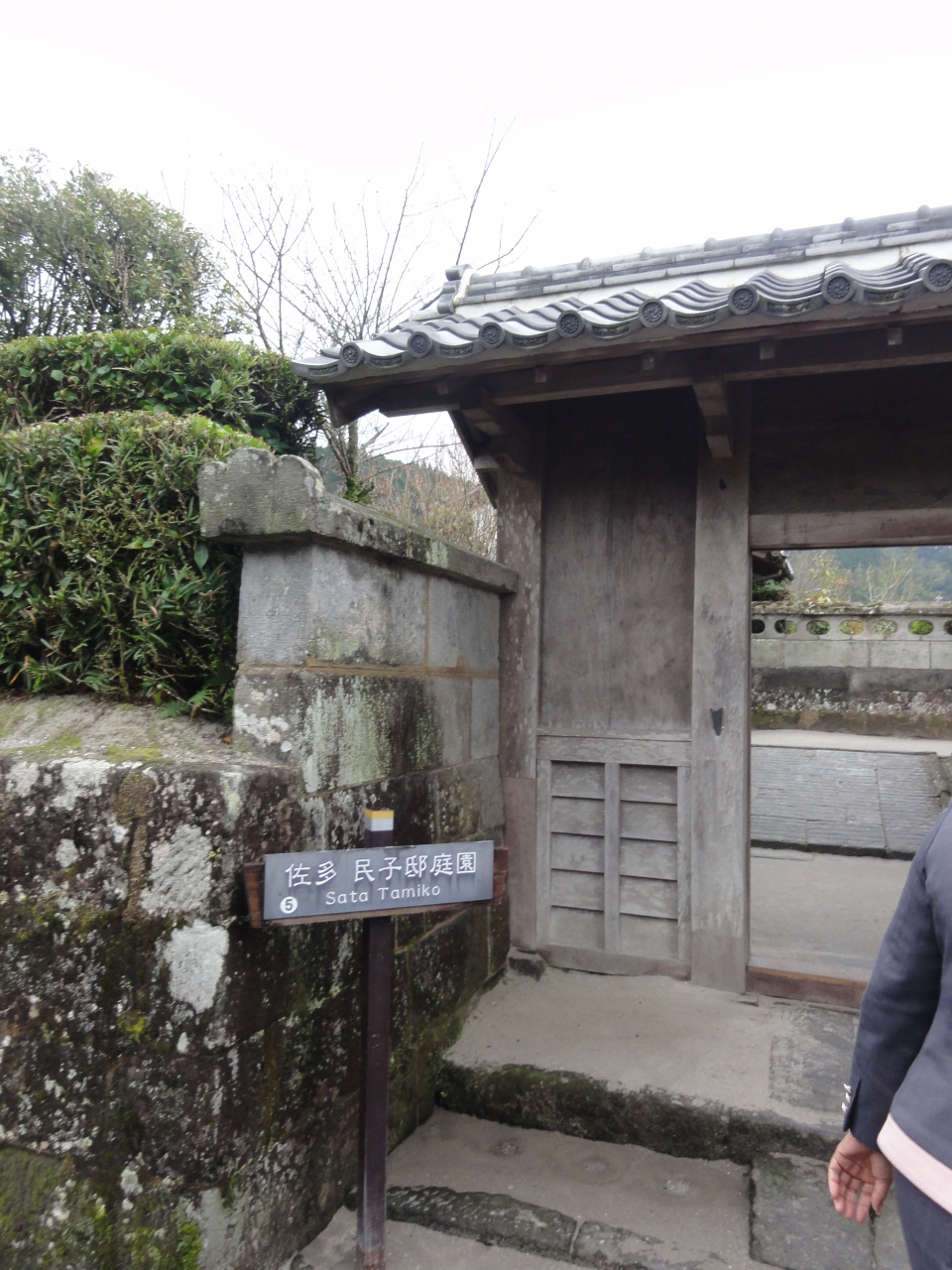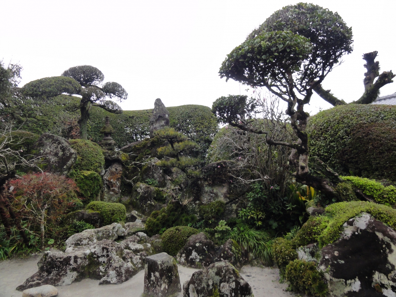 指宿・知覧観光バスで案内されました。門をくぐるとすぐ石塀がありますが防衛を兼ねたものだそうです。お庭に行く手前に鉢植えがたくさん置いてありましたが、本来なら季節ごとに建物内やあちこちに置かれるものですが今はここにまとめ置かれてると説明ありました。大きな石を配した庭は独特の風情がありました。