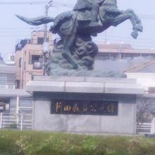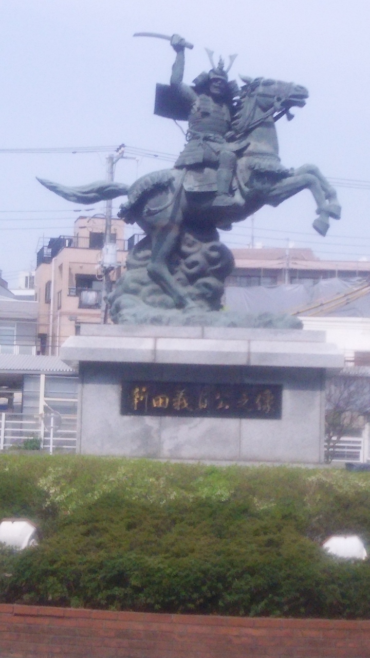 JR南武線、京王線の分倍河原駅前ロータリーにある結構大きな騎馬像。戦国時代の古戦場があることにちなんで建てれれている。なぜか正面が駅側ではなく、南側を見ているが、分倍河原古戦場の方向をみているというのだろうか。